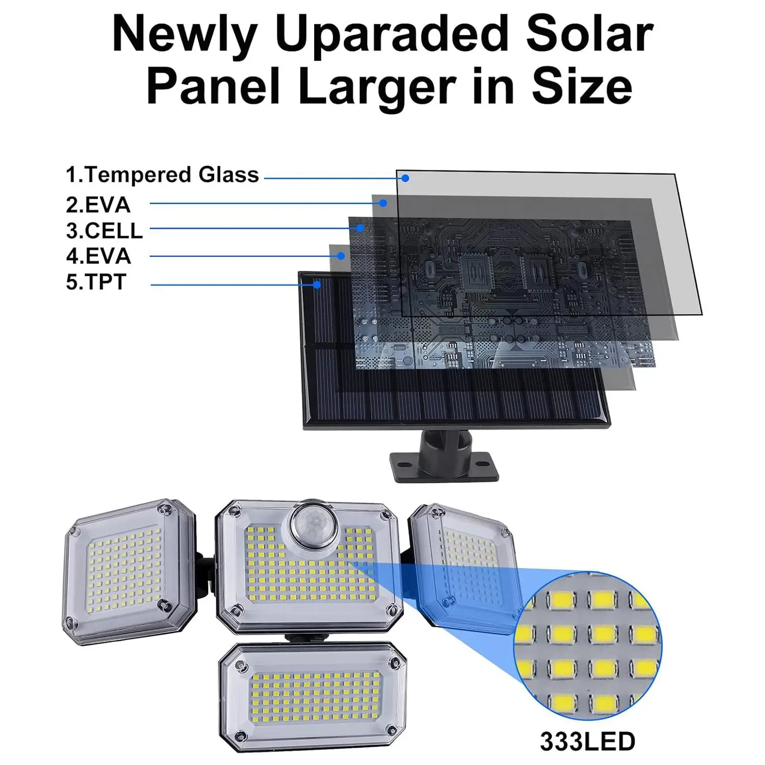 【4-Head Design】: Features four adjustable LED heads, providing extensive illumination coverage for large areas like yards and garages.