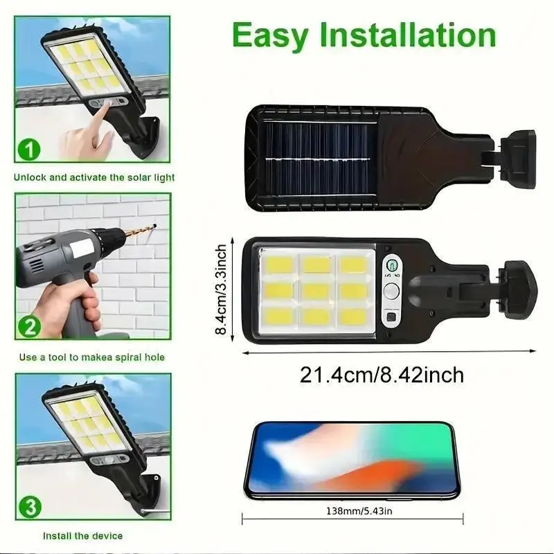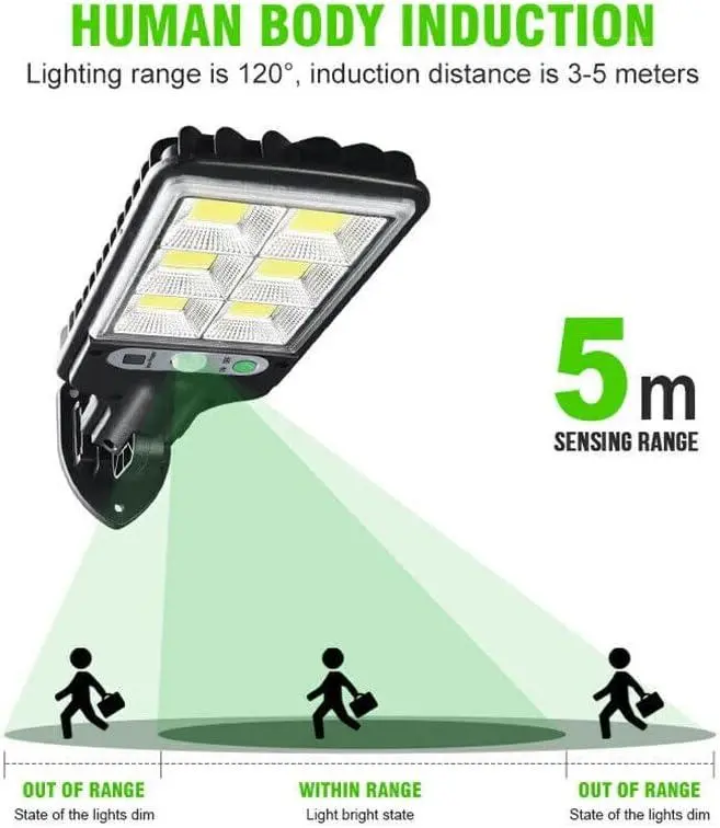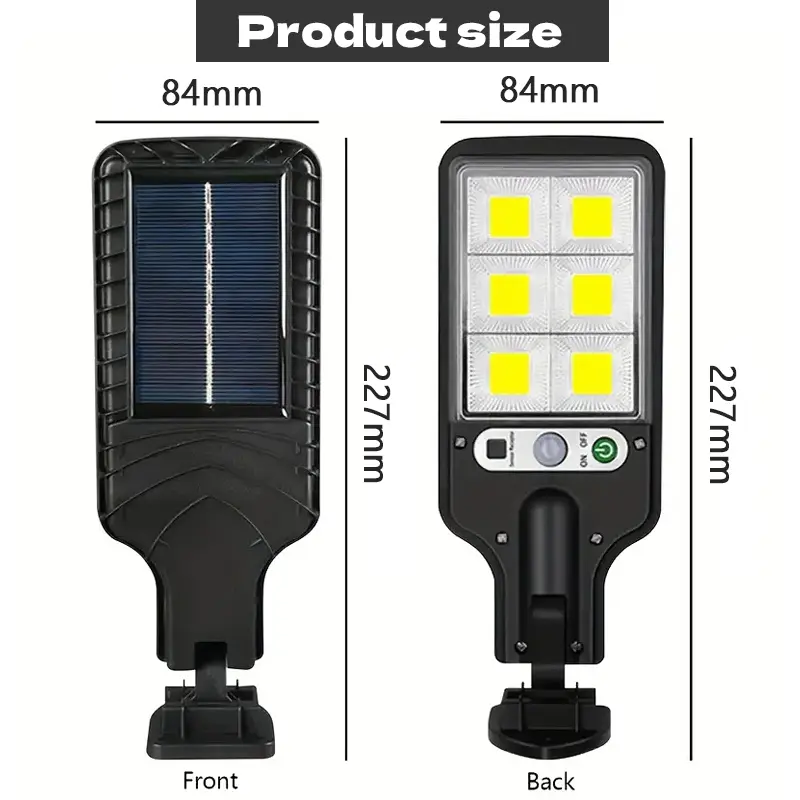 Featuring 120 high-efficiency LED bulbs, this solar-powered street light delivers ultra-bright lighting. It fully illuminates outdoor spaces like doorways, pathways, porches, yards, gardens, and driveways. Experience a safer, more comfortable nighttime environment with enhanced visibility.