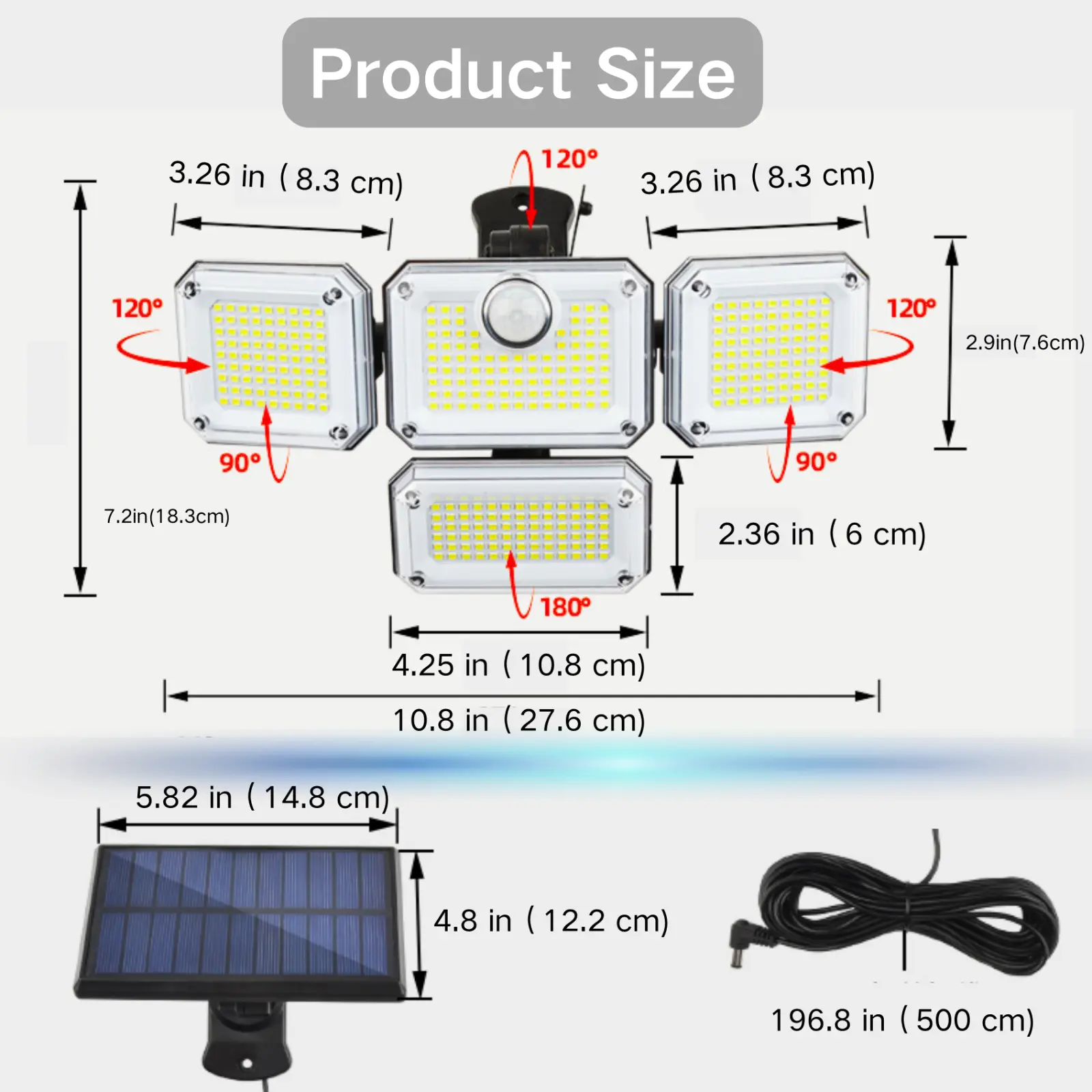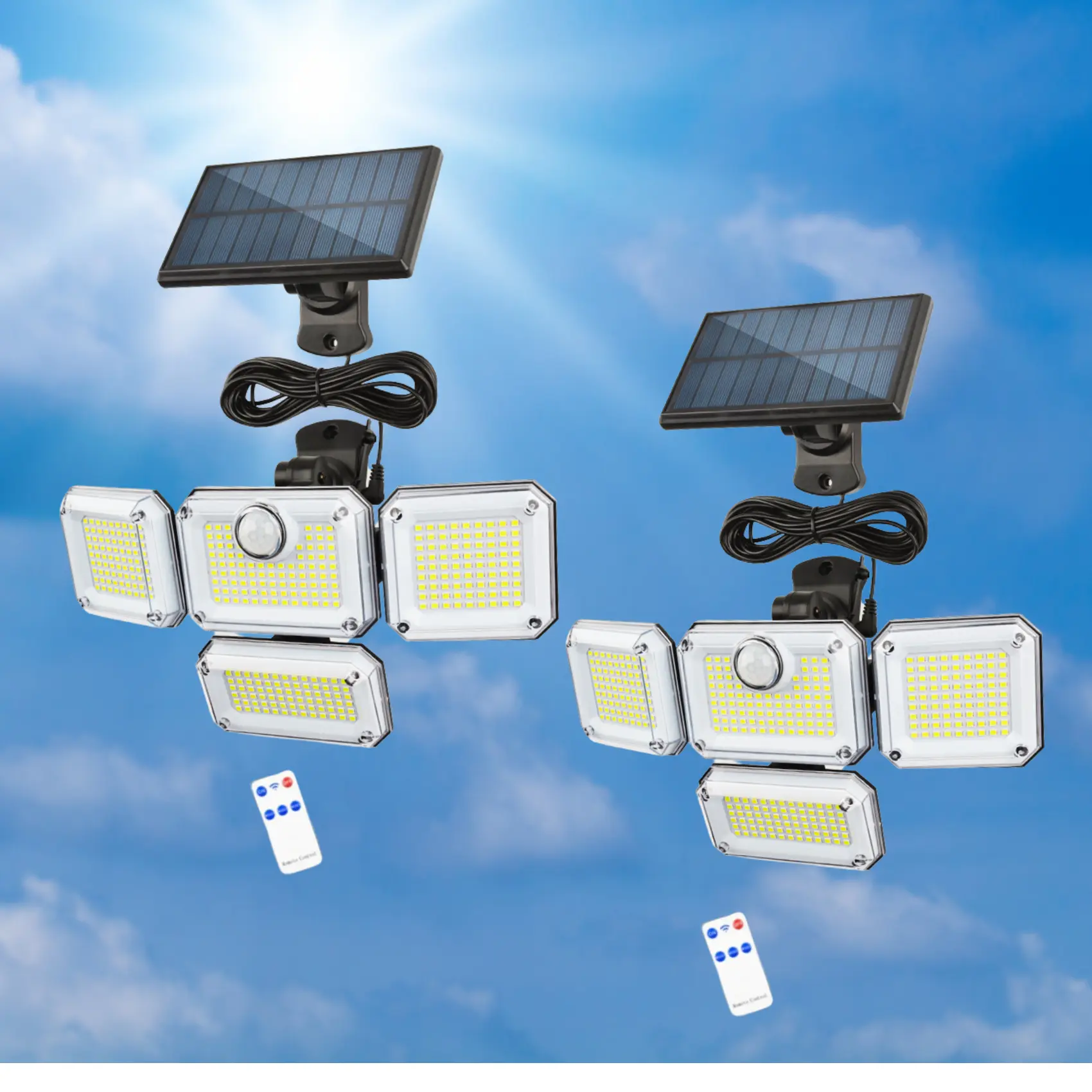 Featuring a 120° wide-angle motion sensor, these solar lights instantly brighten when movement is detected. The detachable solar panel connects via a 16.5 ft cable, allowing optimal sun exposure while positioning the lights wherever needed—ideal for yards, garages, pathways, and even indoor spaces without wiring.