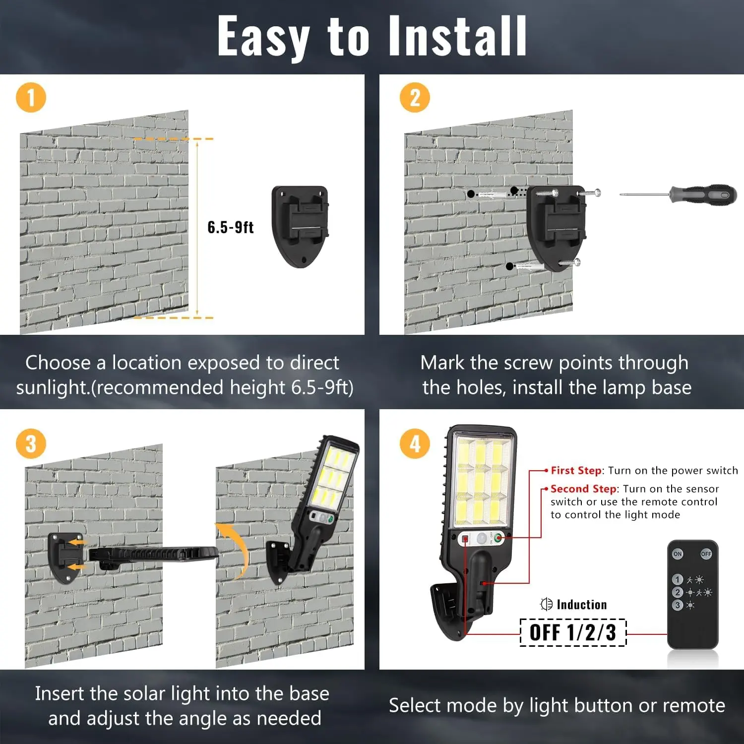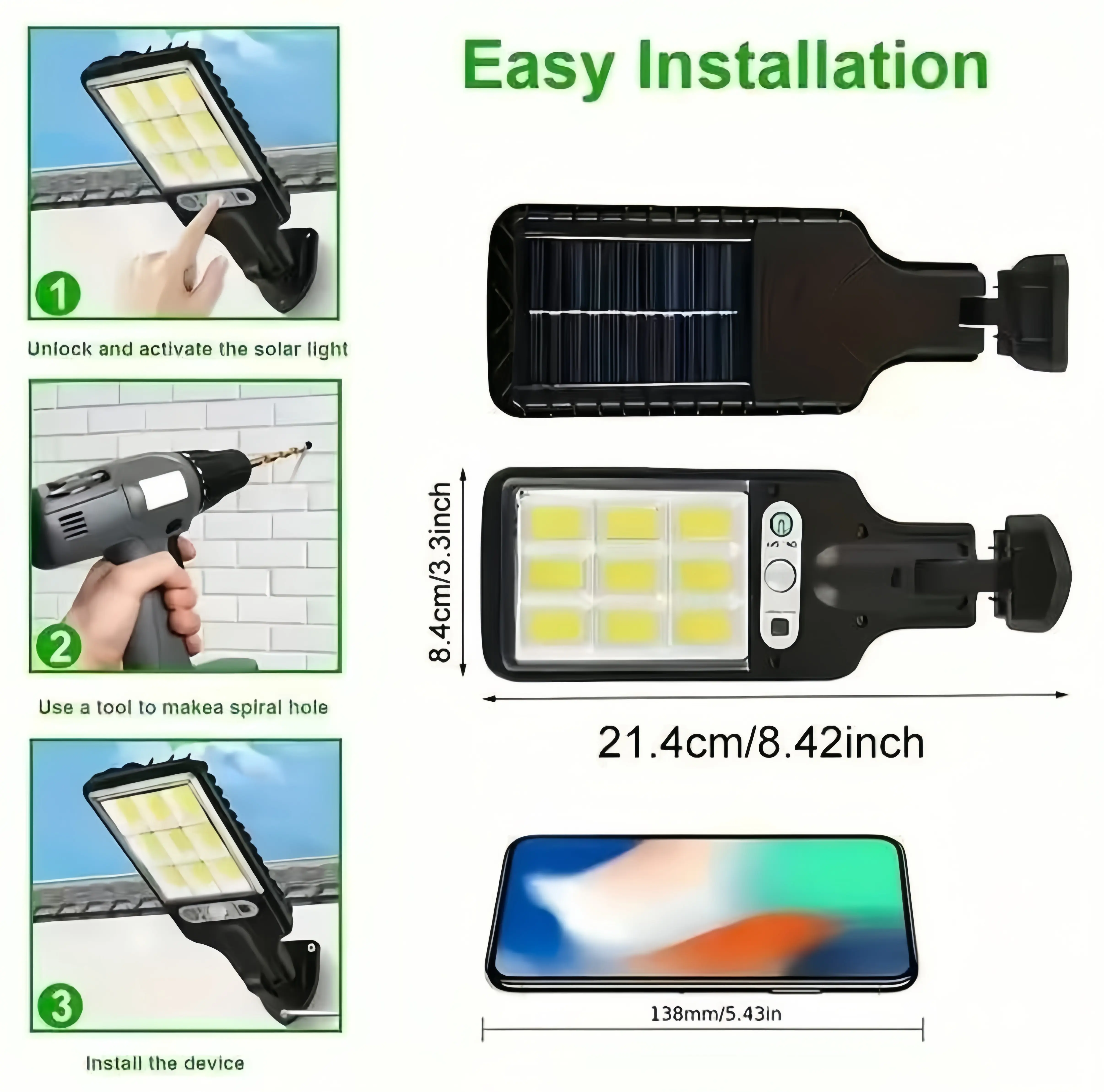 ·Efficient Lighting: This solar-powered street light features 108 COB reflective LED safety wall lights. It's perfect for enhancing visibility in gardens, yards, porches, and garages. 🌞
