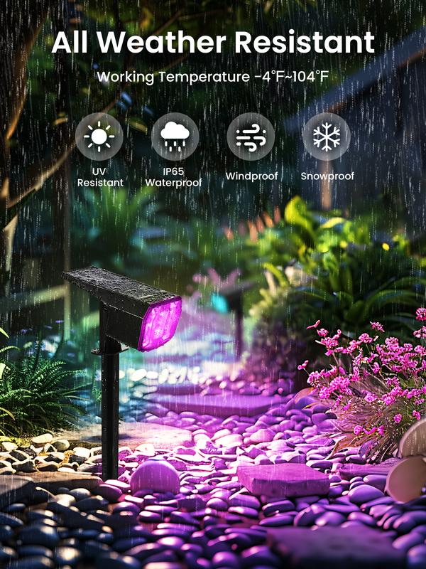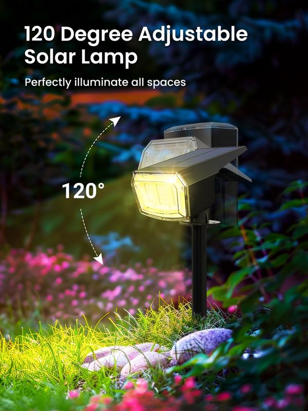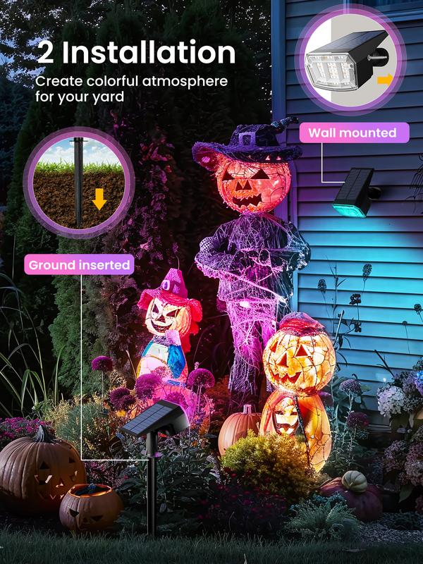 ·【Easy Installation & 2-in-1 Function】Enjoy hassle-free setup with our 2-in-1 installation design, allowing you to effortlessly mount the RGB solar spotlights on walls or securely stake it into the ground, offering unparalleled flexibility for your lighting needs.