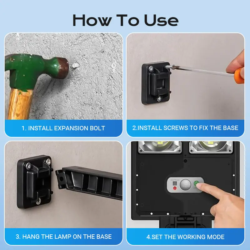 NOTE:Solar lights have different brightness levels compared to wired floodlights. Actual brightness depends on sunlight exposure and installation angle.