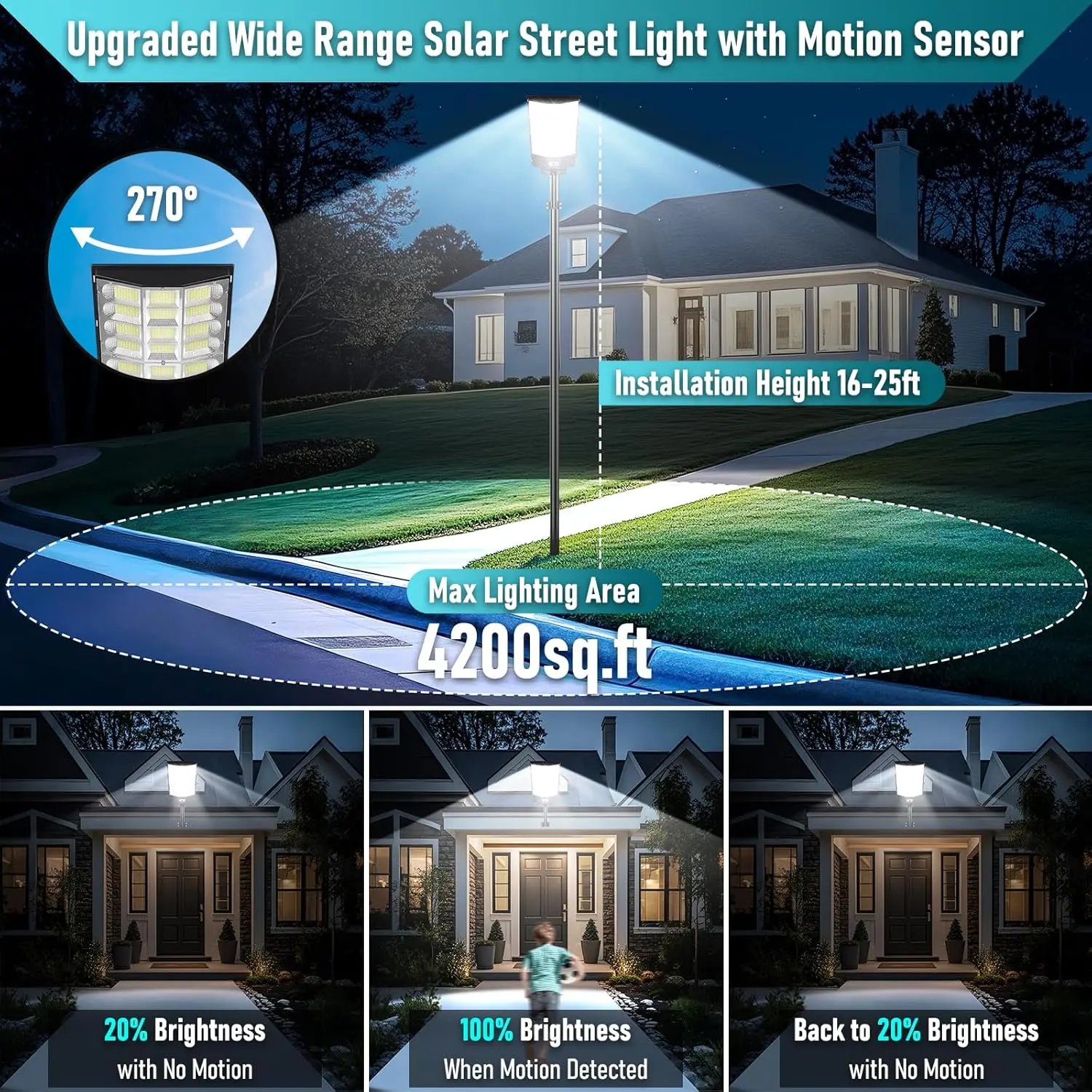 1/2/4 Packs Solar Street Lights Outdoor, Motion Sensor Solar Lights, 6500K LED Street Light Dusk to Dawn Waterproof, Commercial Parking Lot Lighting with Remote