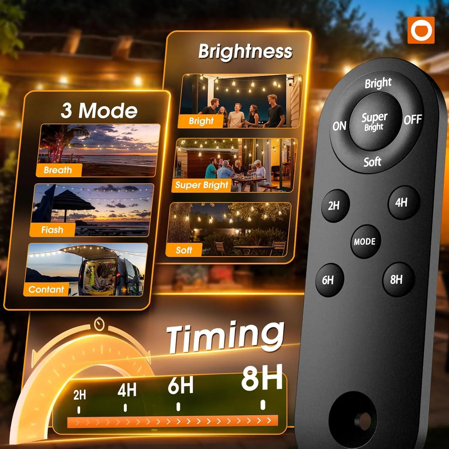 54FT(48+6) Solar String Lights Outdoor Waterproof with USB Charging & Remote Control - Dimmable Solar Power Patio Lights with LED Bulbs for Porch, Garden, Yard, Market, Bistro - Last for 20+Hrs