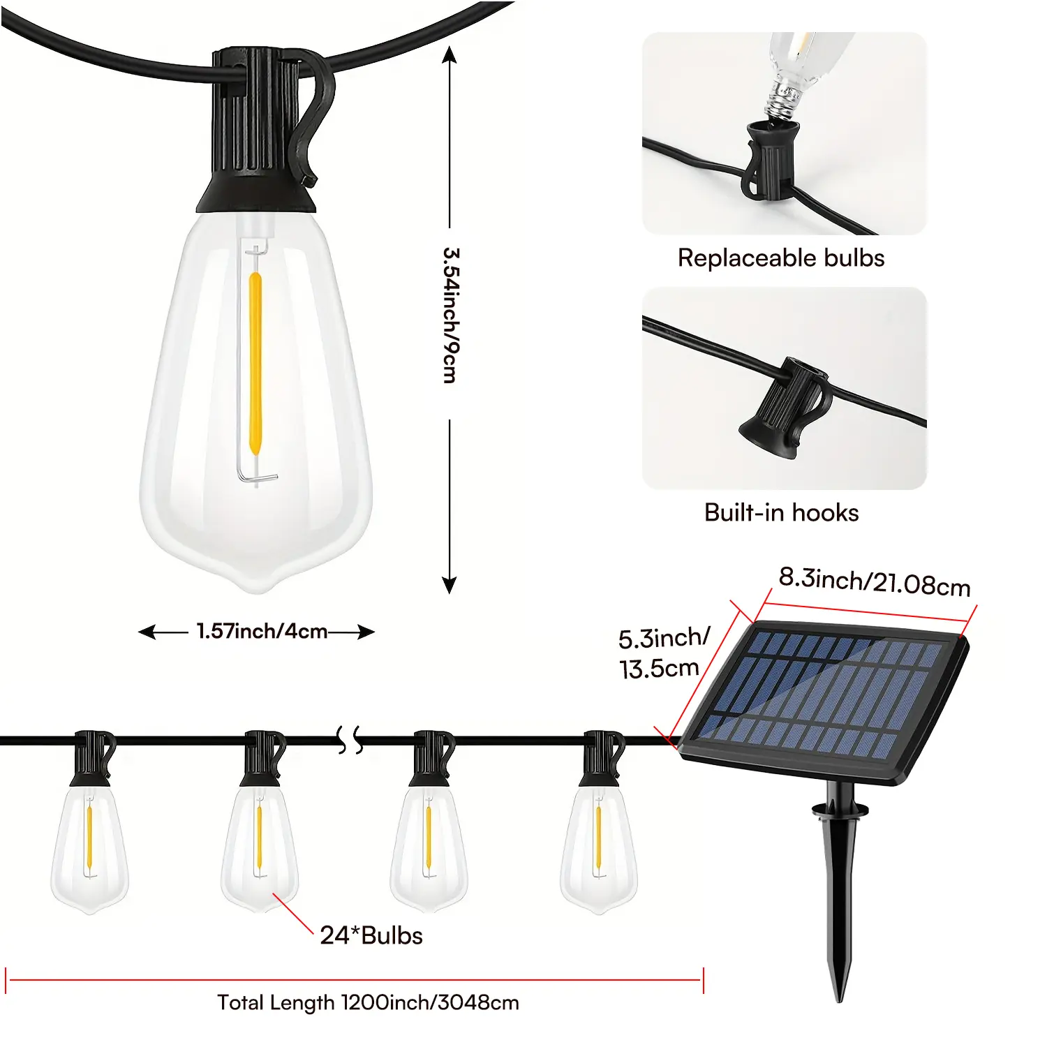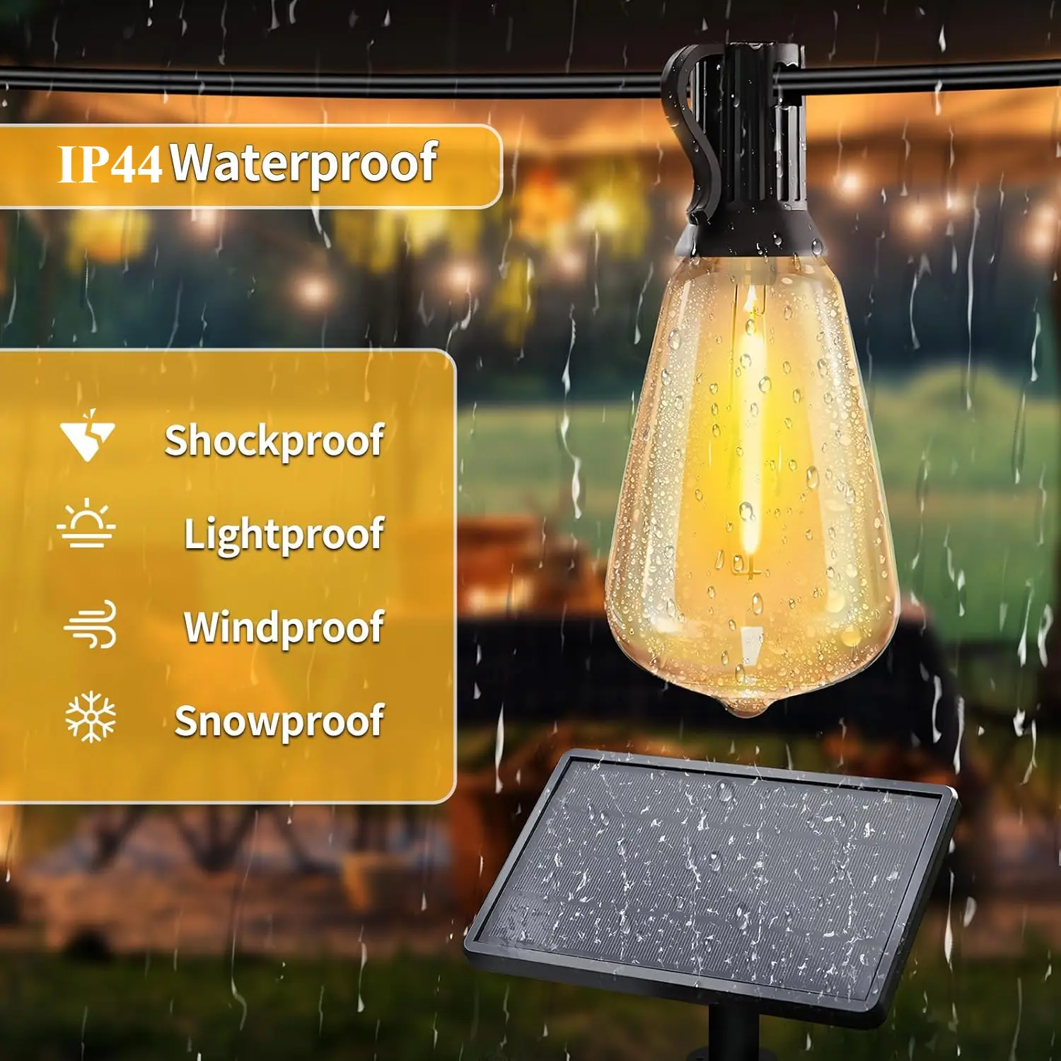 ·Weather-resistant design with shatterproof PET bulbs; capable of withstanding rain, snow and direct sunlight.