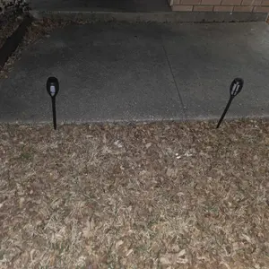 This is the second set of solar lights we've bought like this and they work awesome they just solar power put them in the ground let the sunshine on them they work really well recommend it