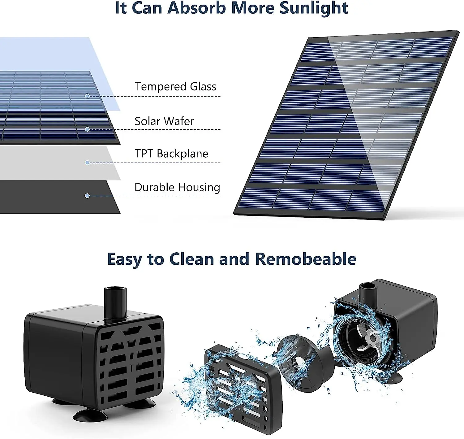 ·[Eco-friendly And Safe]: It does not need batteries or electricity, it is completely controlled by solar energy. So, it is very environmentally friendly. This solar water pump kit is very safe from users without any danger. It is a perfect patio and garden decoration.