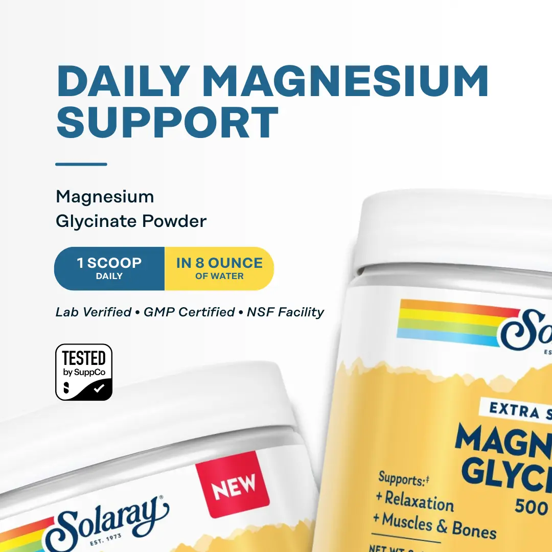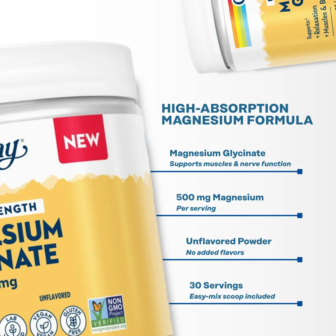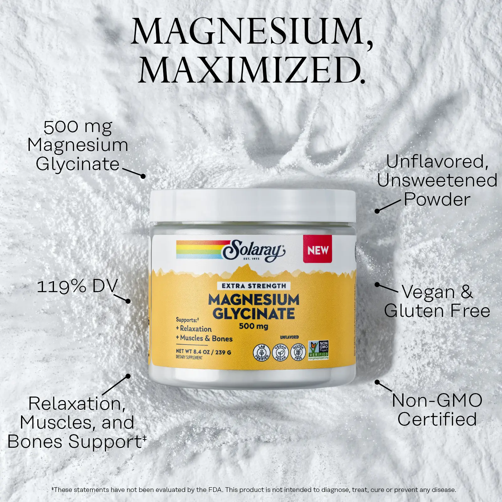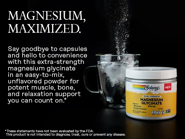 Magnesium, maximized: Say goodbye to capsules and hello to convenience with this extra-strength magnesium glycinate powder. It goes beyond your daily dose of chelated magnesium glycinate in an easy-to-mix, unflavored powder for potent muscle, bone, and relaxation support you can count on.* This high-quality supplement is produced and tested in Utah in our GMP facility certified by NSF for quality you can trust.