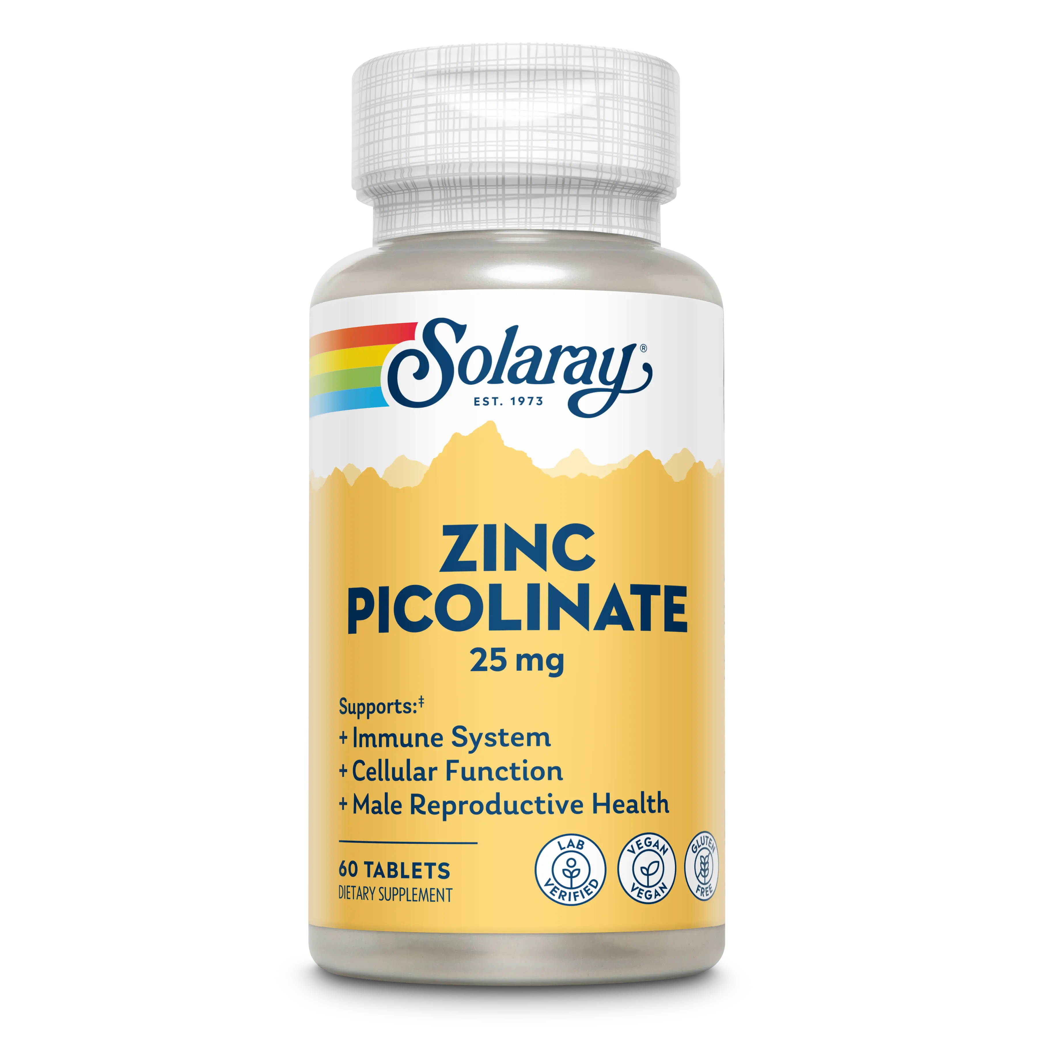 An essential mineral: Zinc is necessary for the activity of over 300 enzymes, but your body can’t make it on its own. When you need your daily value and then some, turn to Solaray’s Zinc Picolinate—a more absorbable form of this trace mineral. It provides powerful support for the immune system, cellular function, skin health, and male reproductive health.*
