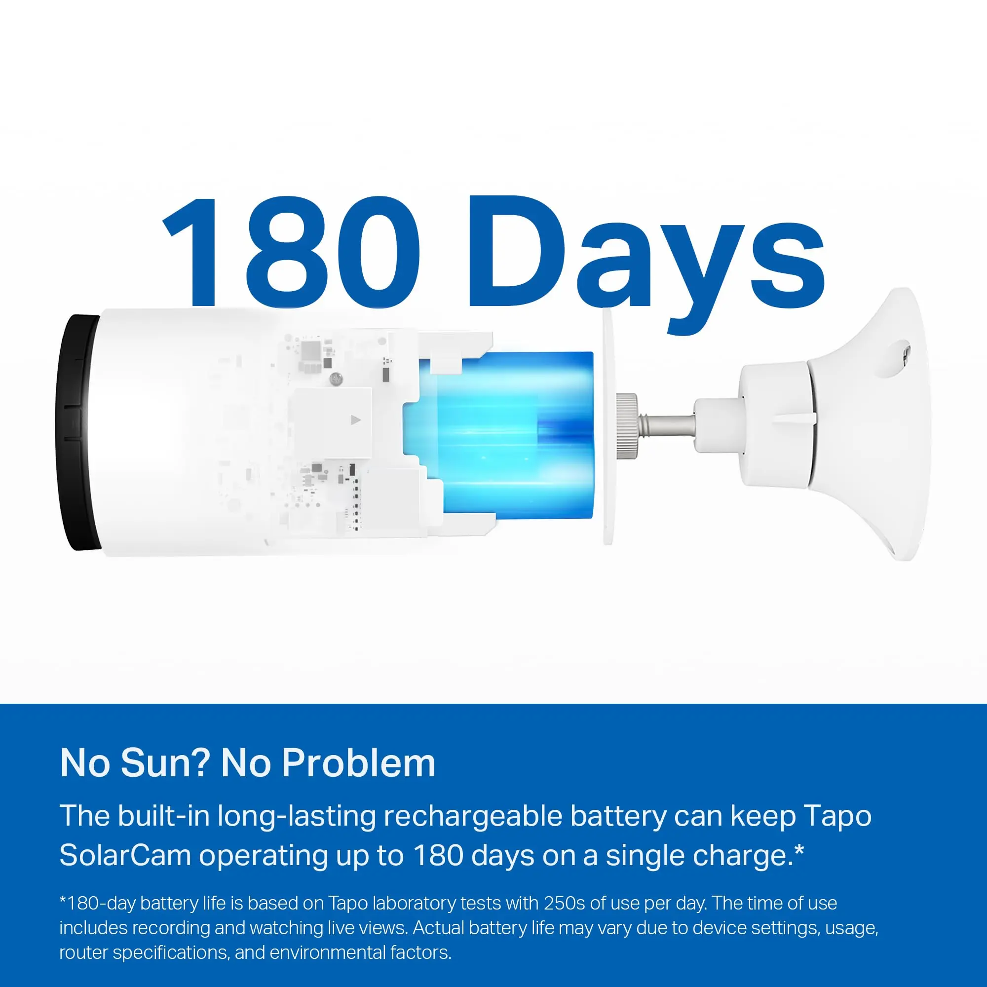 Endless power from solar energy keeps your home secure. The Tapo C402 KIT uses a modular solar panel to charge the built-in battery, ensuring up to 180 days of power, even on cloudy days. Experience a zero-touch maintenance system with this reliable kit. No hub needed, making setup simple.