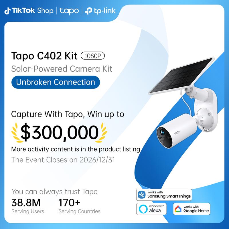 The Tapo C402 KIT is built to withstand outdoor conditions with an IP65 weatherproof rating. Protecting it from rain, dust, and other elements, ensuring durability and reliability year-round. Works with Alexa for a seamless smart home experience.