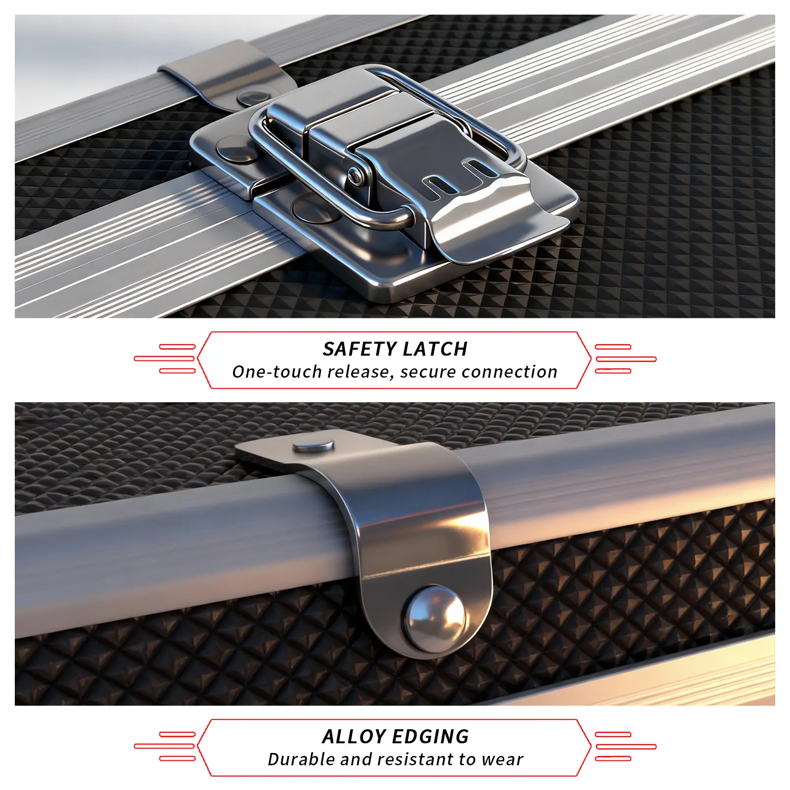 🛠️【Secure Metal Latches & Alloy Frame】