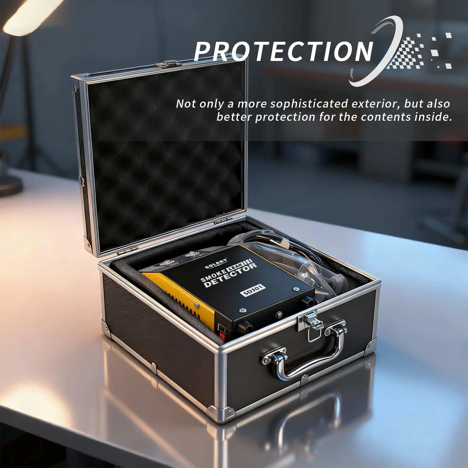 Dimensions: 25 × 25 × 14.8 cm (9.84 × 9.84 × 5.83 in). Perfect for storing diagnostic tools, smoke leak detectors, and other delicate automotive equipment.