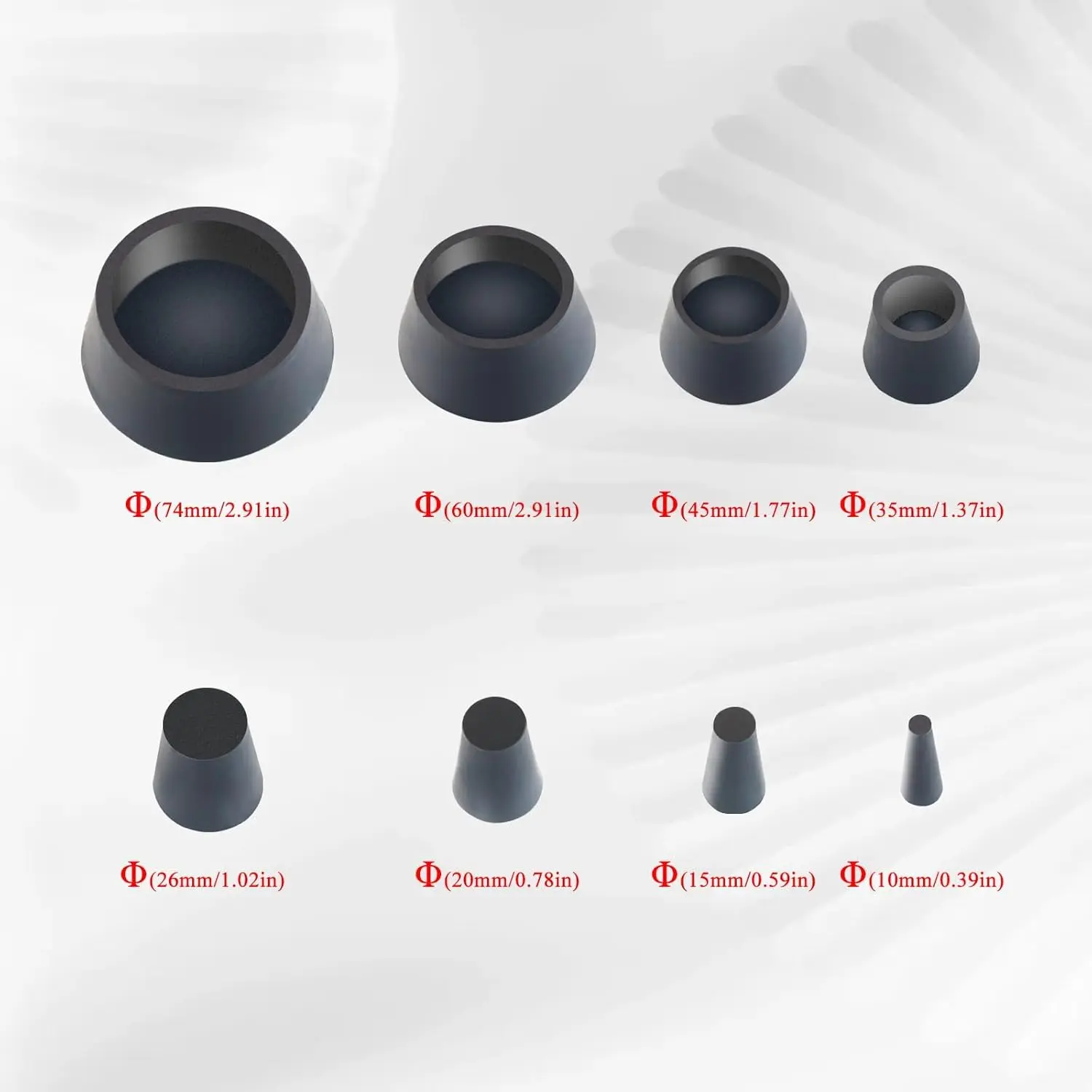 Includes 8 cap plugs ranging from 10mm to 74mm (0.4" to 3"), covering most intake and vacuum line sizes.