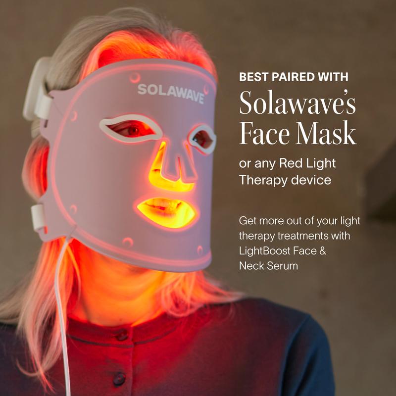 Apply a thin layer to clean face and neck before light therapy or as part of your daily skincare routine. Layers well under moisturizer or SPF.