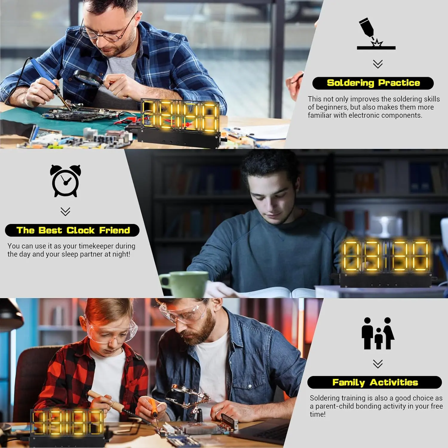 ·CREATIVE DIY PRESENT: This digital clock soldering kit is not only an ideal teaching aid for the introduction of electronics, but also a practical desktop alarm clock, through the hands of soldering and assembly, you will experience the complete process of making from circuit boards to precision timepieces, and get a sense of accomplishment and pride