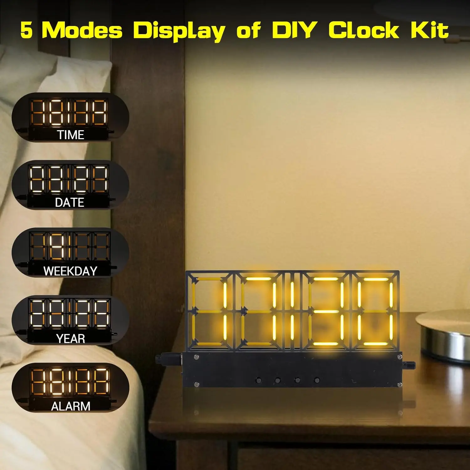 ·DIGITAL CLOCK KIT: As a practical desktop alarm clock, this product has five kinds of display time, day of the week, date, year, alarm function, in addition to it also has a power failure memory function, you don't have to worry about every time you need to adjust the time after power on