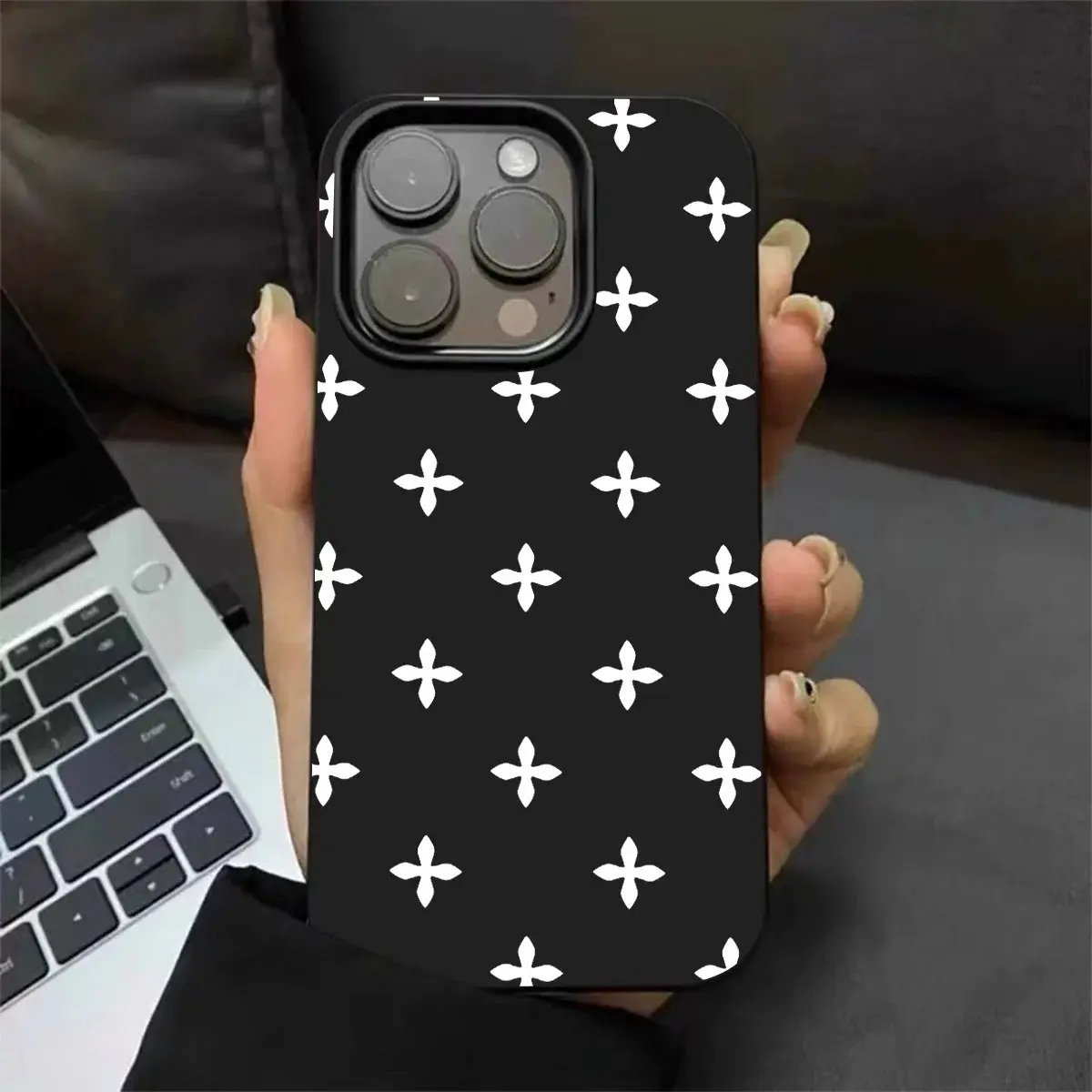 Solid Black and White Full-Screen Cross Pattern Compatible with iPhone 17 16 15 14 13 Pro Max and Pro Plus Minimalist Premium-Feel Shockproof Couple's Phone Case