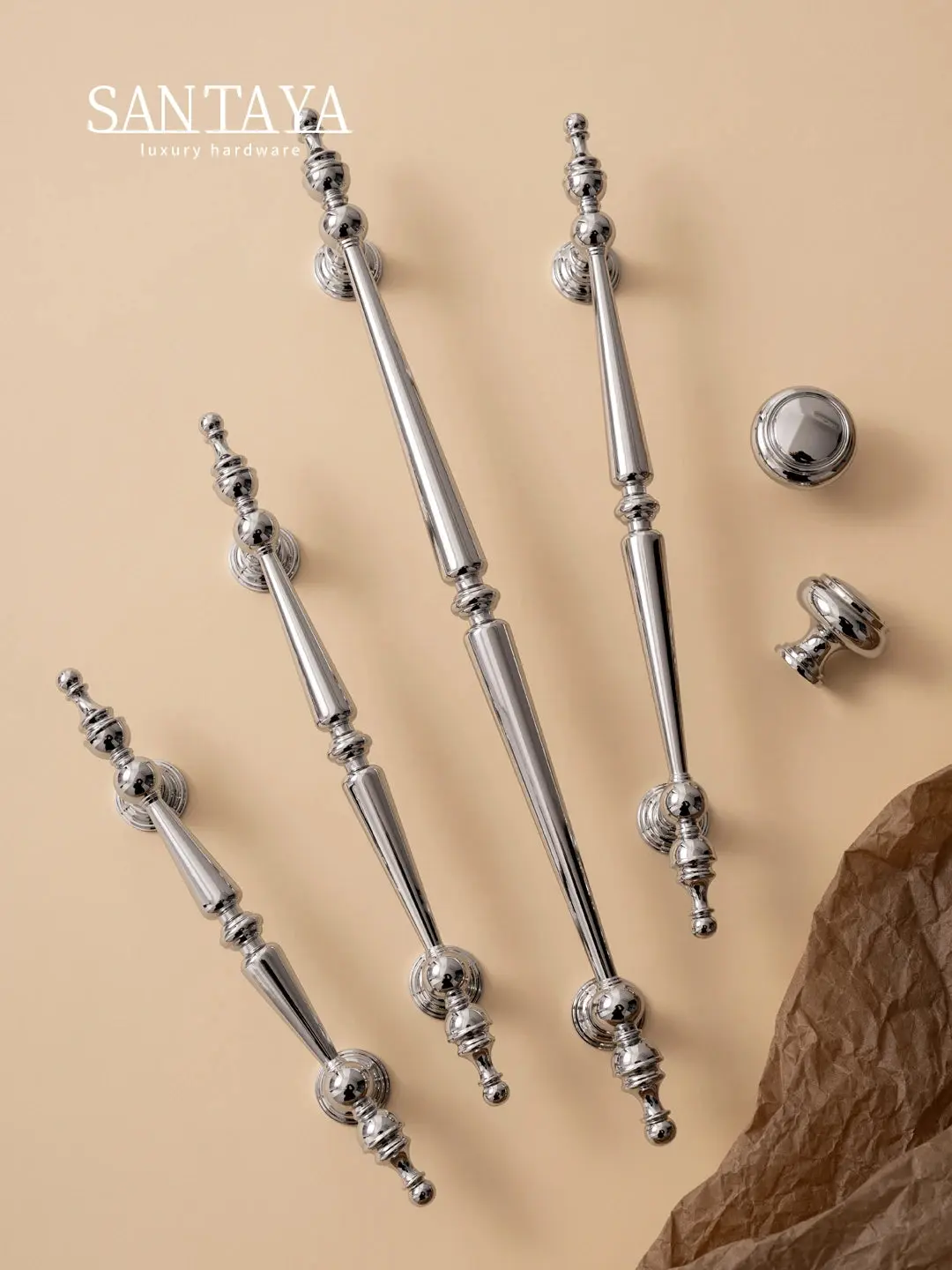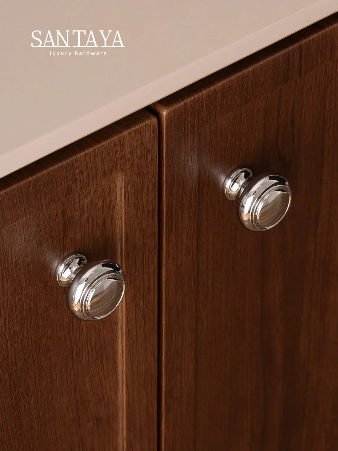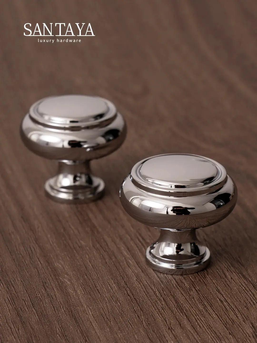 Santaya Solid Brass Chrome Kitchen Cabinet Pull Drawer Knob Bedroom Bright Silver Wardrobe Dresser Handle