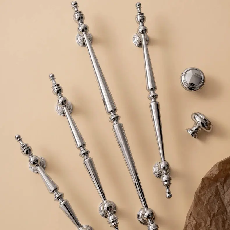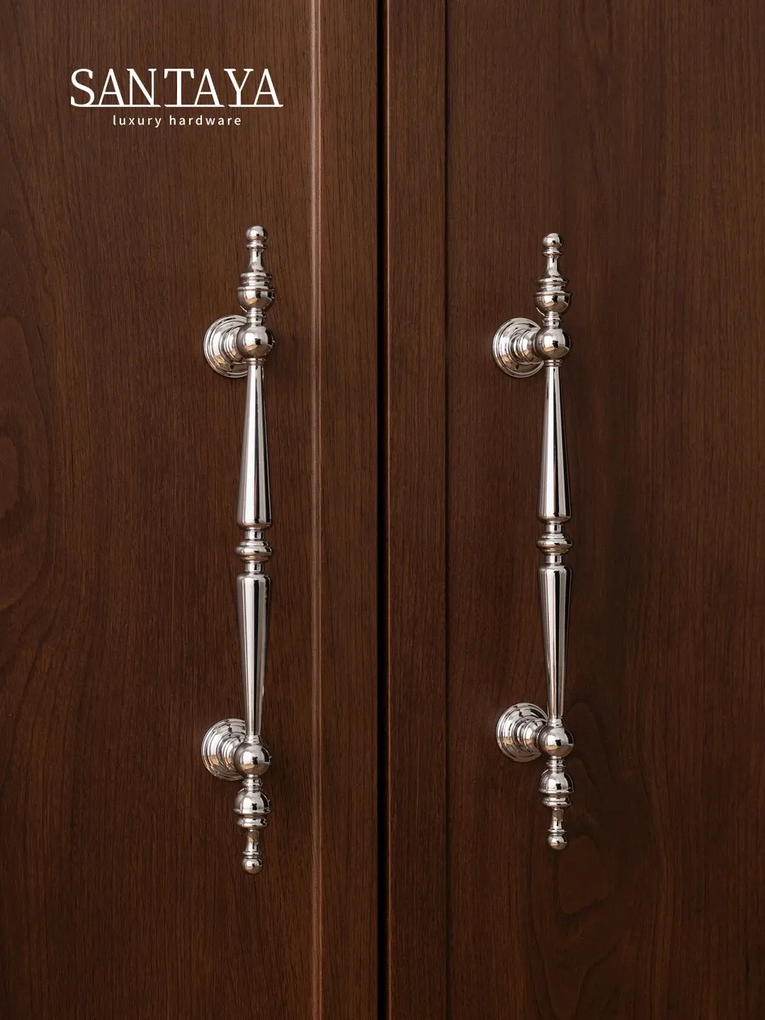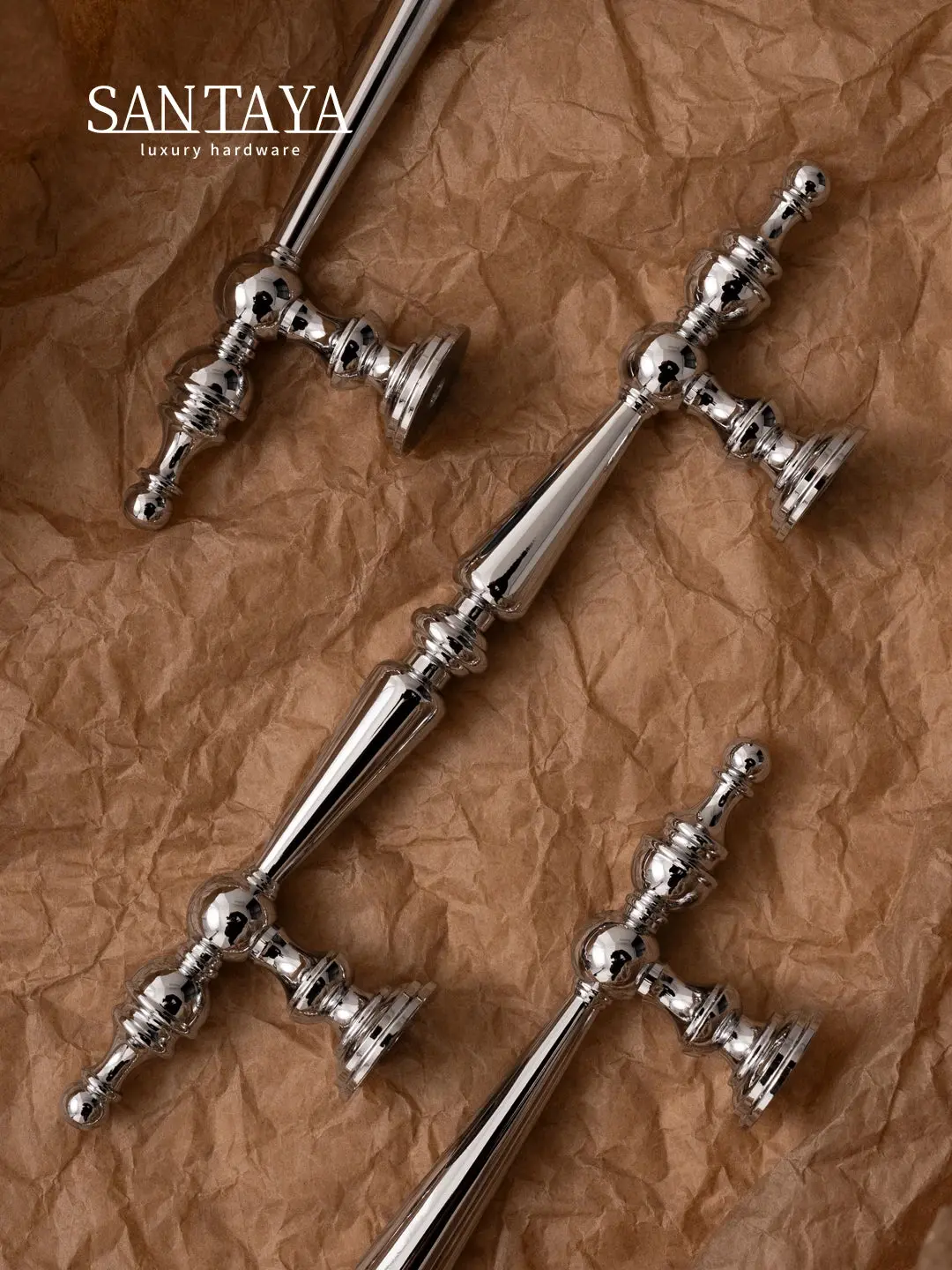 Santaya Solid Brass Chrome Kitchen Cabinet Pull Drawer Knob Bedroom Bright Silver Wardrobe Dresser Handle