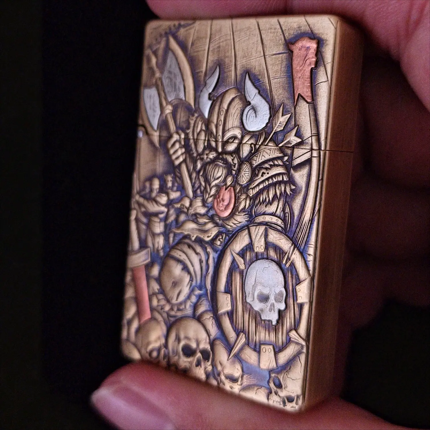 Solid-Brass Monoblock Lighter | Sculpted from Solid Copper | 3D Embossed Front/Back