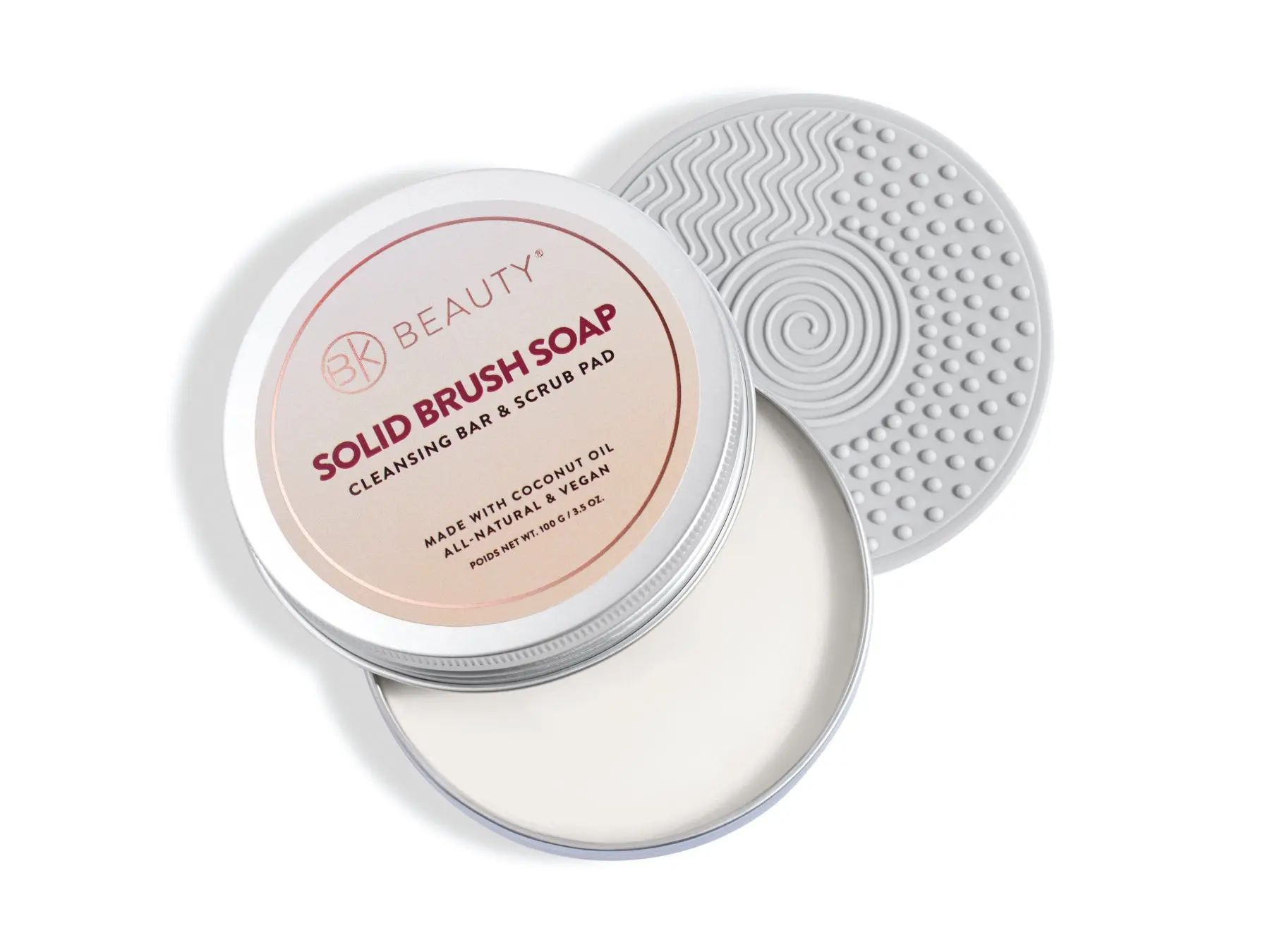 This solid brush shampoo is what a brush should be. It is simple, clean, natural scent and actually removes all of the dirt, oil, shedding skin from your brushes. The best part is that it does not destroy your brush while washing it. Other brush cleaners require 2-3'xs of washing your brush. Not BK Beauty. Unless it is super dirty, you can just wet the brush in tepid water, sweep it back and forth on the solid soap, run the brush on the silicone scrubber and rinse. Simplicity at its finest.
