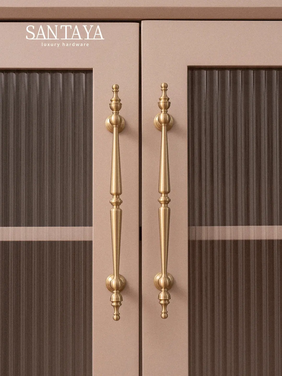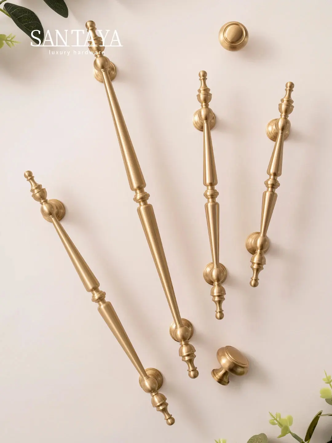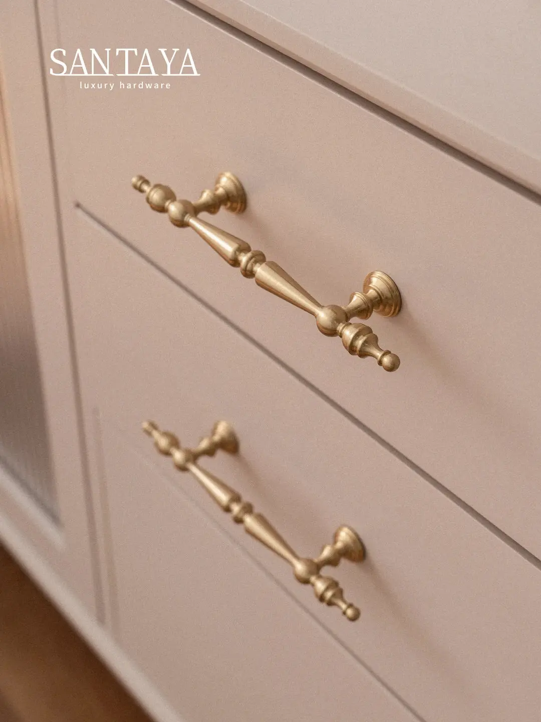 Santaya Solid Brushed Brass Kitchen Cabinet Pull Drawer Knob Bedroom Wardrobe Dresser Handle Luxury Furniture Knob