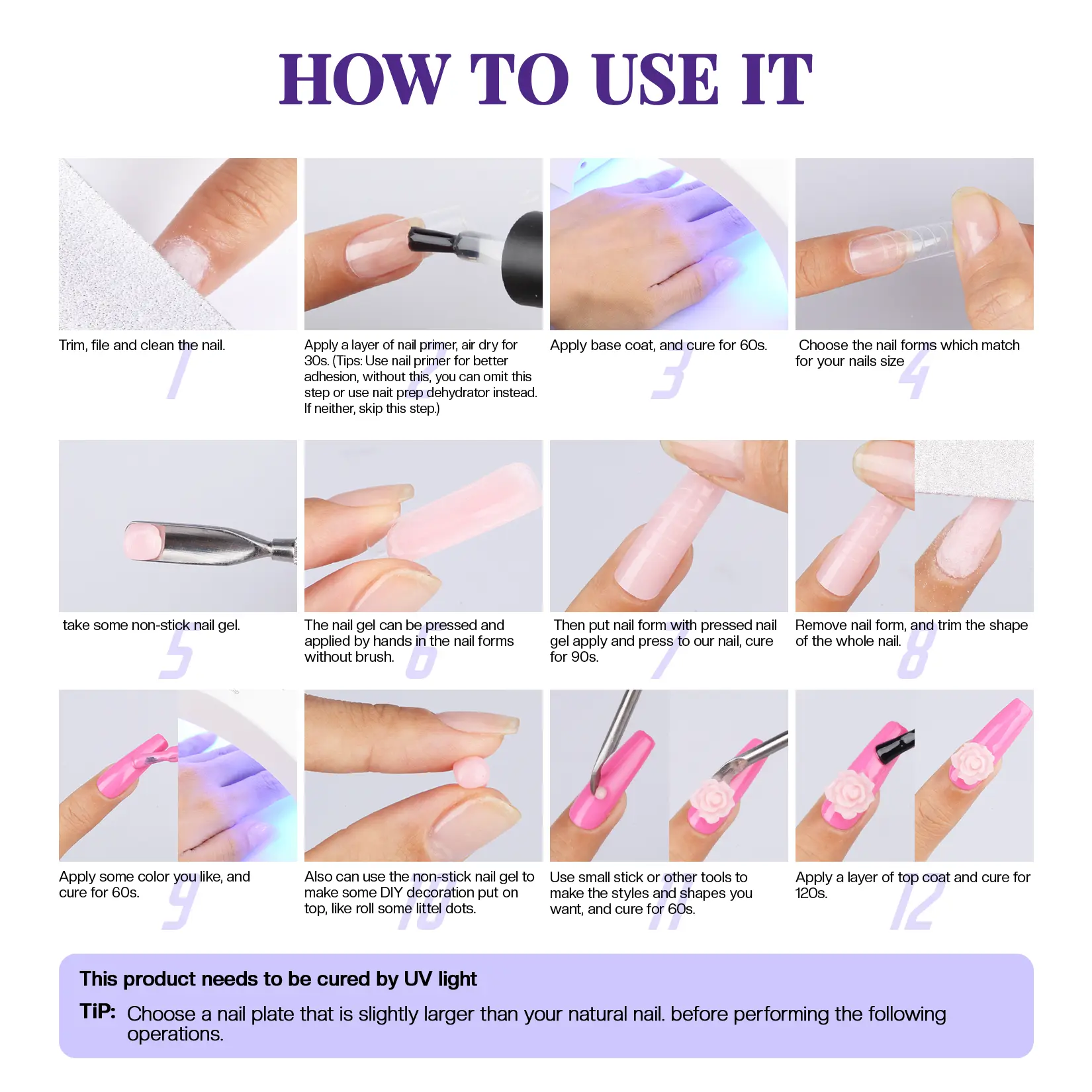 SOLID BUILDING GEL: This upgraded building gel can be used as nail extension gel with soft texture, non-flowing and non-sticky. 3D STRUCTURING GEL MANICURE: You can use the silicone moulds and pens to create 3D sculpting manicure or you can mix it with mirrored powder, sculpt it yourself and apply it to your nails. Have fun making nail art