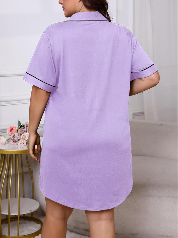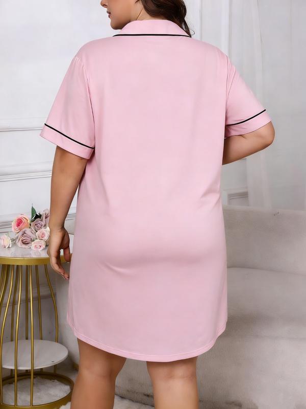 【Plus Size】 Solid Button Closure PJ Dress, Casual Comfy Short Sleeve Nightdress for Summer, Women's Sleepwear for Indoor Wear