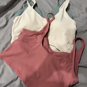 Love these! And I mean loveeeeee these! Fabric is wonderful. Built in bra is wonderful. Colors are wonderful. I will live in these come summer. Only recommendation is to size up. I’m usually a medium but bought a large and that is the perfect fit with no back bacon.