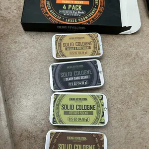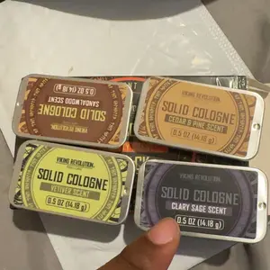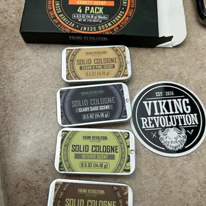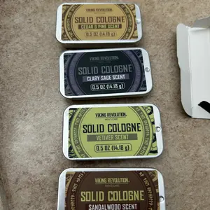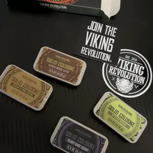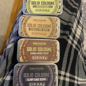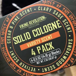 Viking Revolution Solid Cologne for Men - 4 Pack Travel Size Balm | Alcohol-Free | Cedar, Sandalwood, Vetiver, Clary Sage | 0.5oz Each