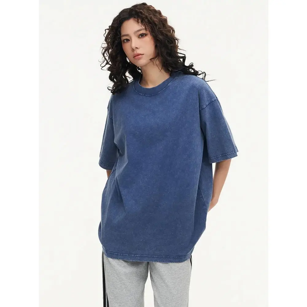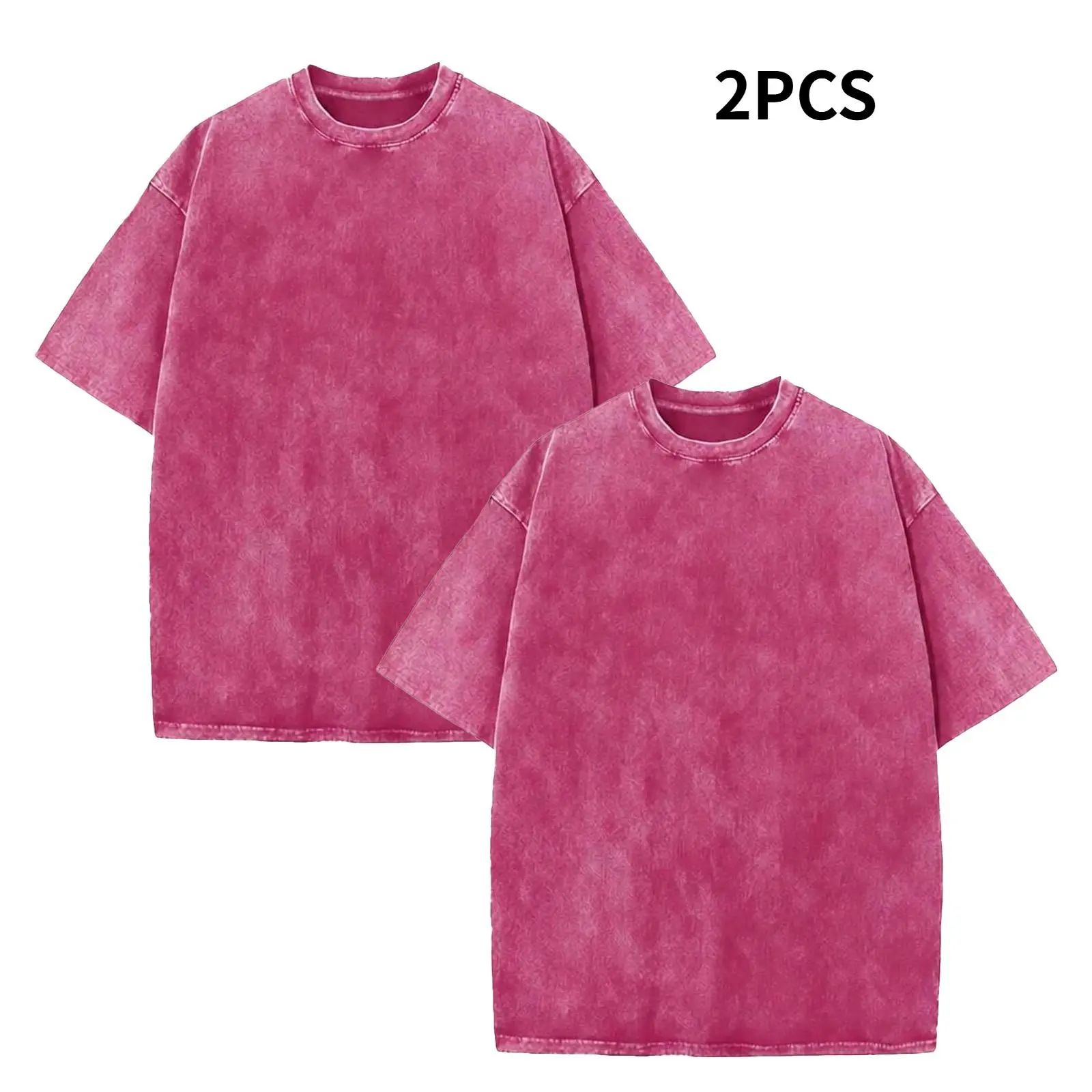 Men's and Women's Retro Stone Washed Cotton T-Shirts - Sports Fitness Athletic T-Shirts Summer Casual Tops