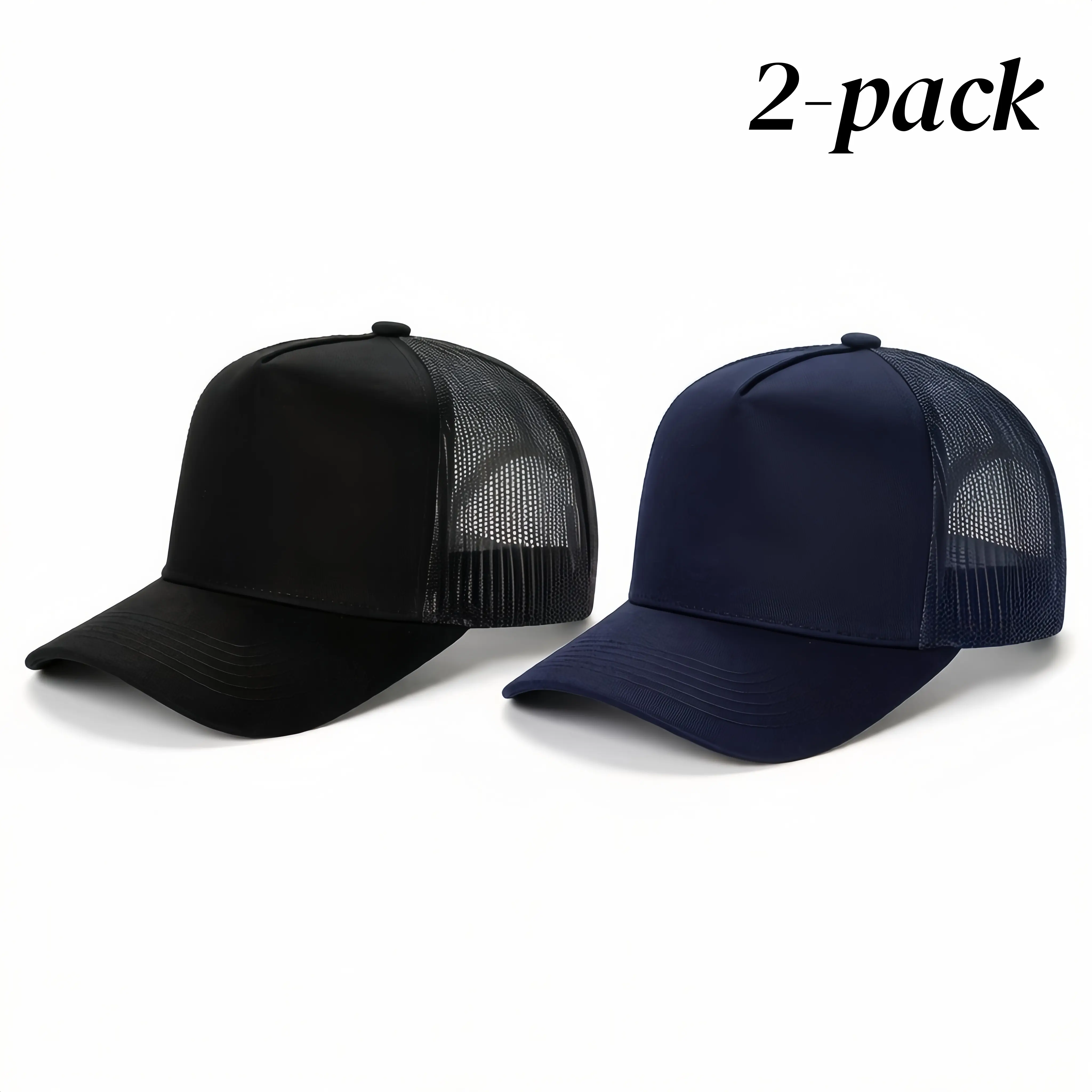2-pack Solid color baseball cap trucker hat, simple and stylish, breathable and adjustable for outdoor sports, suitable for spring and autumn travel and beach vacations