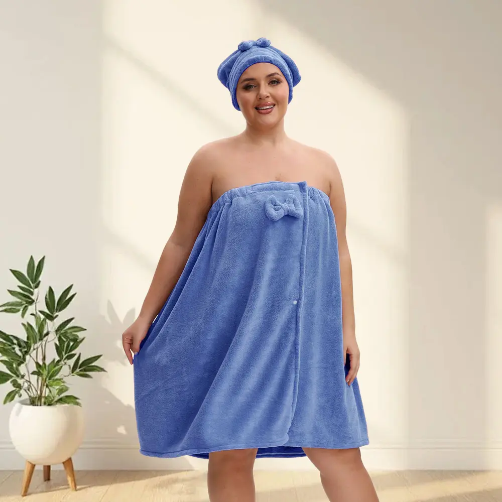 Solid Color Bathrobe & Bath Towel Set, Adjustable Shower Cap Included Bathrobe & Bath Towel, Soft Comfortable Bathrobe & Towel for Home Travel Sauna, Bathroom Towel