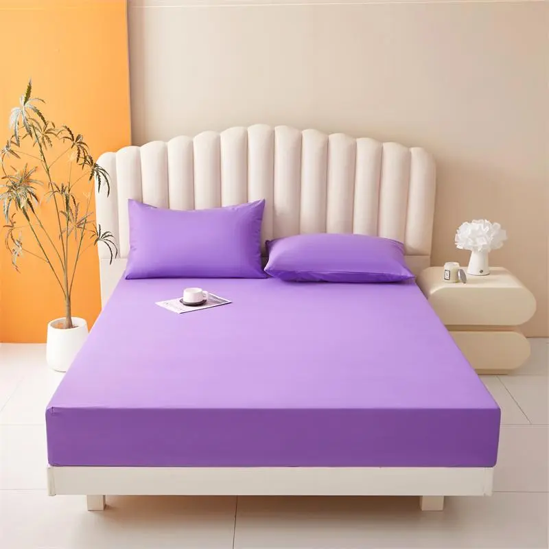 Solid Color Bedding Set, 3 Counts/set Including 1 Count Fitted Sheet & 2 Counts Pillowcase, Soft Comfortable Bedding Set for Home Bedroom