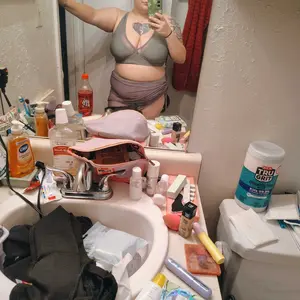 The perfect little 2 piece. It covers my loose skin on my belly and makes me feel confident. I removed the bra pads. So now you can see ripple outlines but it's not that bad. You have to really look for it. Unless it's cold out 😂