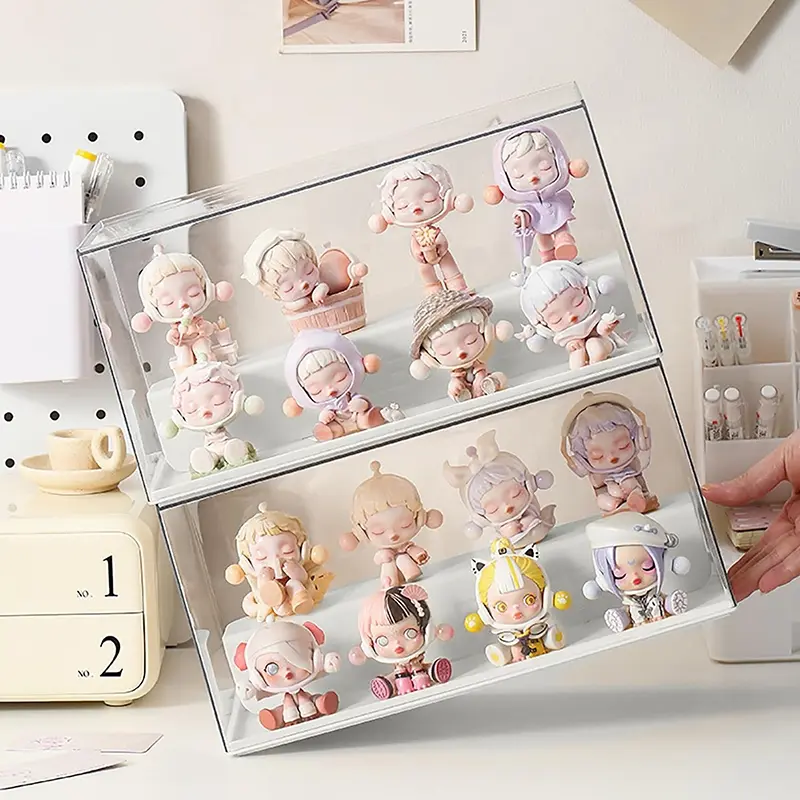 Solid Color Blind Box Storage Display Stand, Acrylic Transparent Display Box, Dustproof Cabinet, Small Figurine Desktop Storage Box, Used for Doll Toy Collectibles, Cute Figures, Stackable for Protection, Storage, and Organization