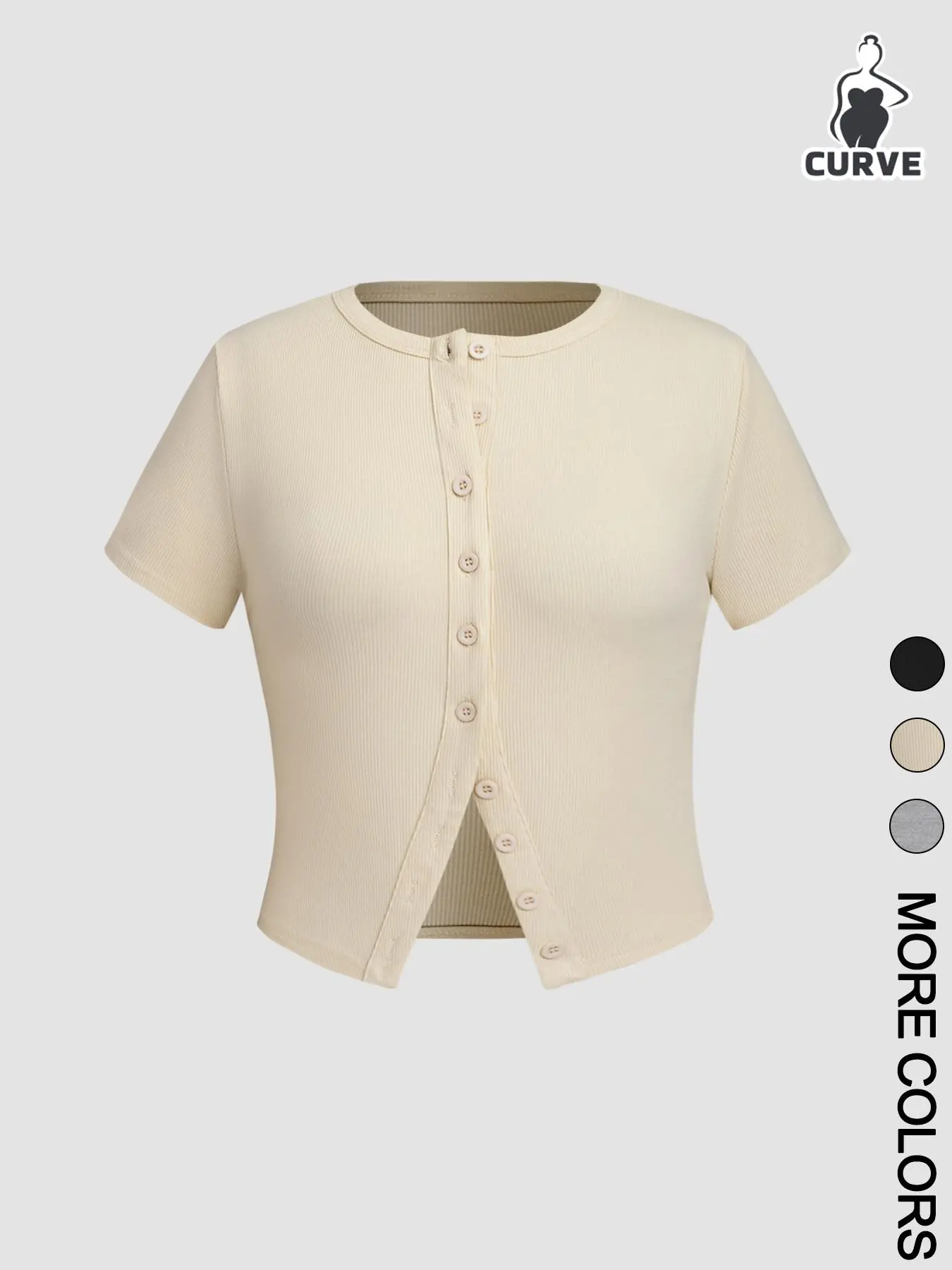 5. 【Plus Size】 Solid Color Button Tee, Casual Short Sleeve Round Neck T-shirt for Daily Wear, Women Plus Clothing for Summer, Casual Fashionable Top, Top