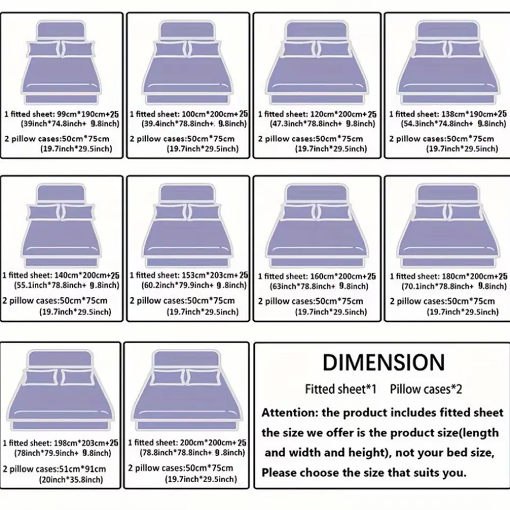 【Complete Set】: Includes one fitted sheet and two pillowcases, catering to your bedding needs without extra purchases.