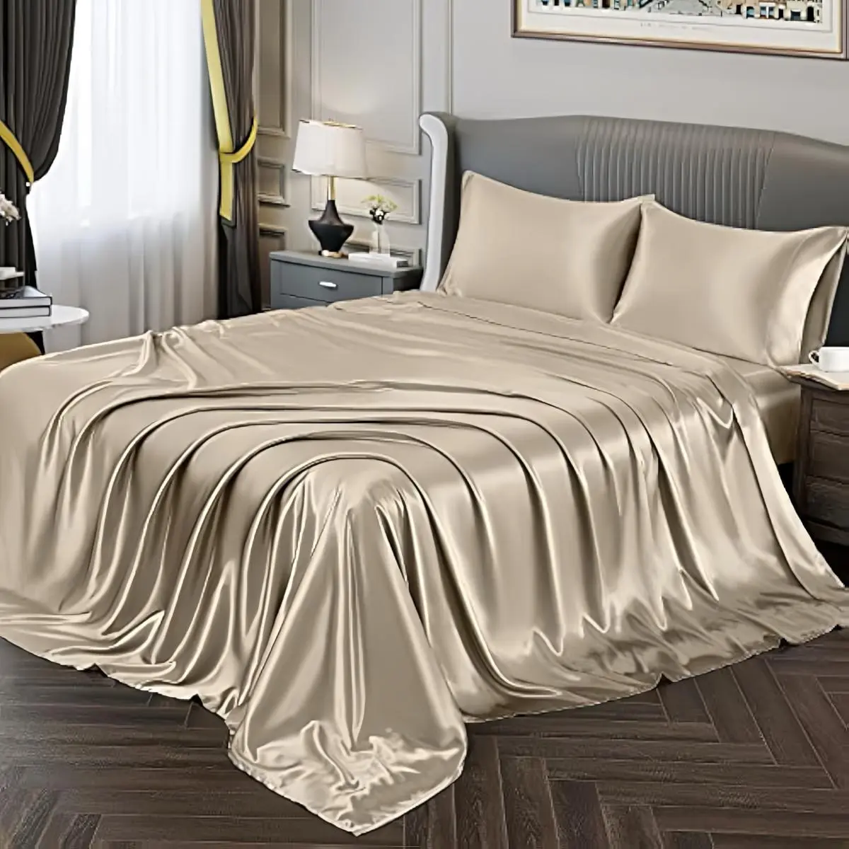Solid Color Satin Bedding Set, 1 Count Flat Sheet & 1 Count Silky Fitted Sheet & 2 Counts Pillowcase without Filler, Soft Bedding Set for Home Bedroom, Satin Bed Sheets