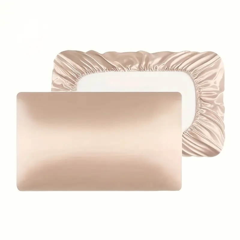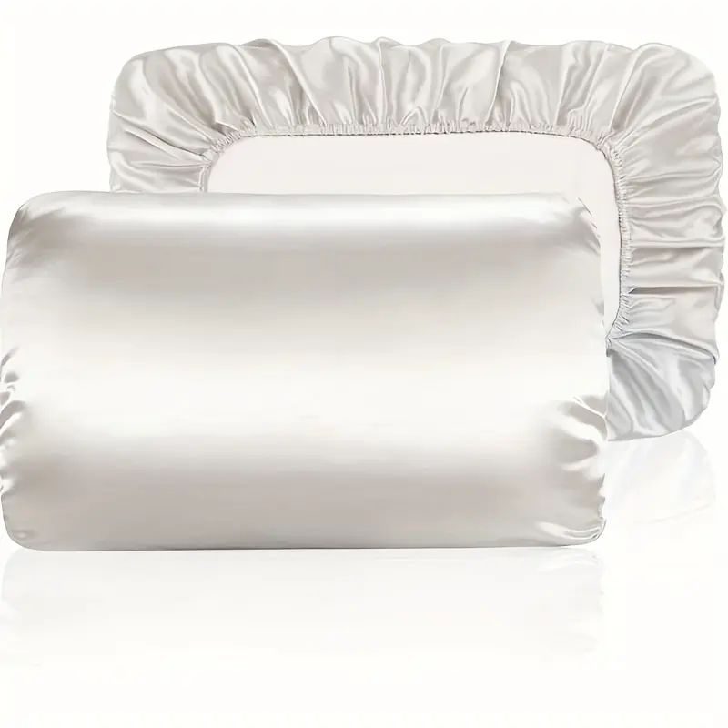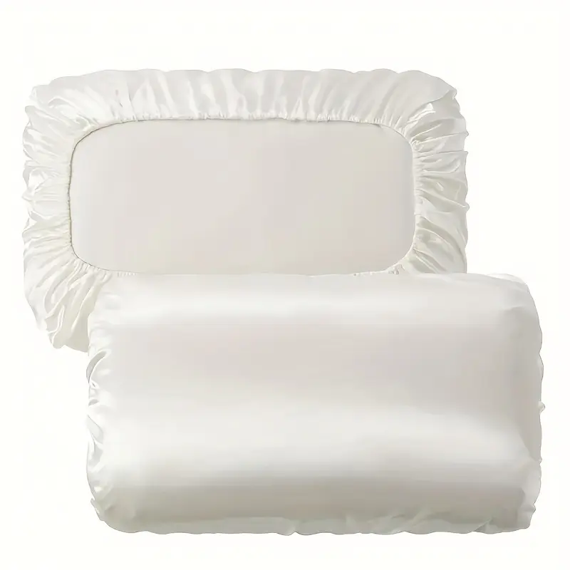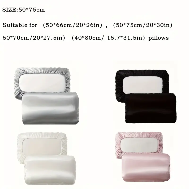 Solid Color Satin Pillowcase without Filler 2 Counts Soft Pillow Cover with Elastic Band Pillow Protector for Home Bedroom & Travel Silky Satin Bedding