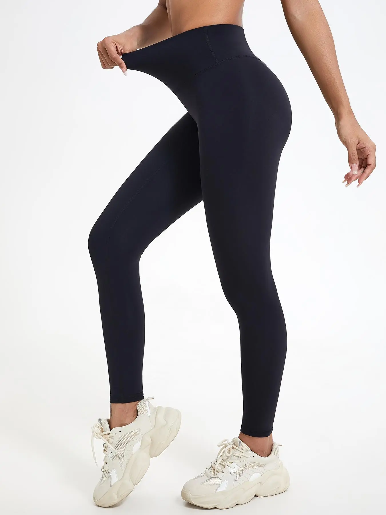 Women's Solid Color Sports Leggings, Tummy Control Leggings, Casual Comfy Breathable Skinny Pants for Yoga Gym Workout Running, Ladies Sportswear for All Seasons