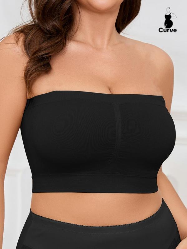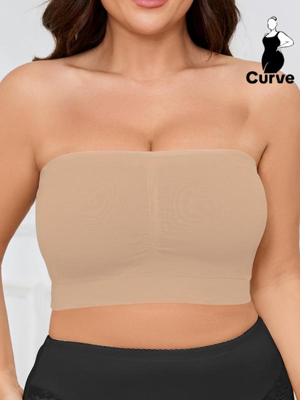 【Plus Size】 Solid Color Strapless Crop Tube Bra, Casual Comfortable Breathable Seamless Bra for Daily Wear, No Padding,Women's Lingerie for All Seasons