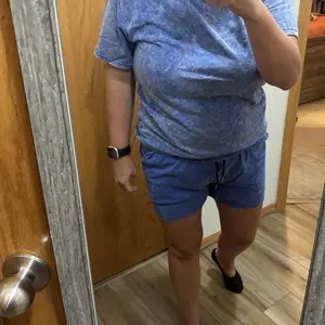 I’m around 145 to 150 pounds and I got a medium and the shorts are a tiny bit snug because the elastic waistband doesn’t have much stretch but it’s soft like butter and it’s absolutely adorable!!!! It still fits me good, but I could do a large also if you want it a little more roomy.