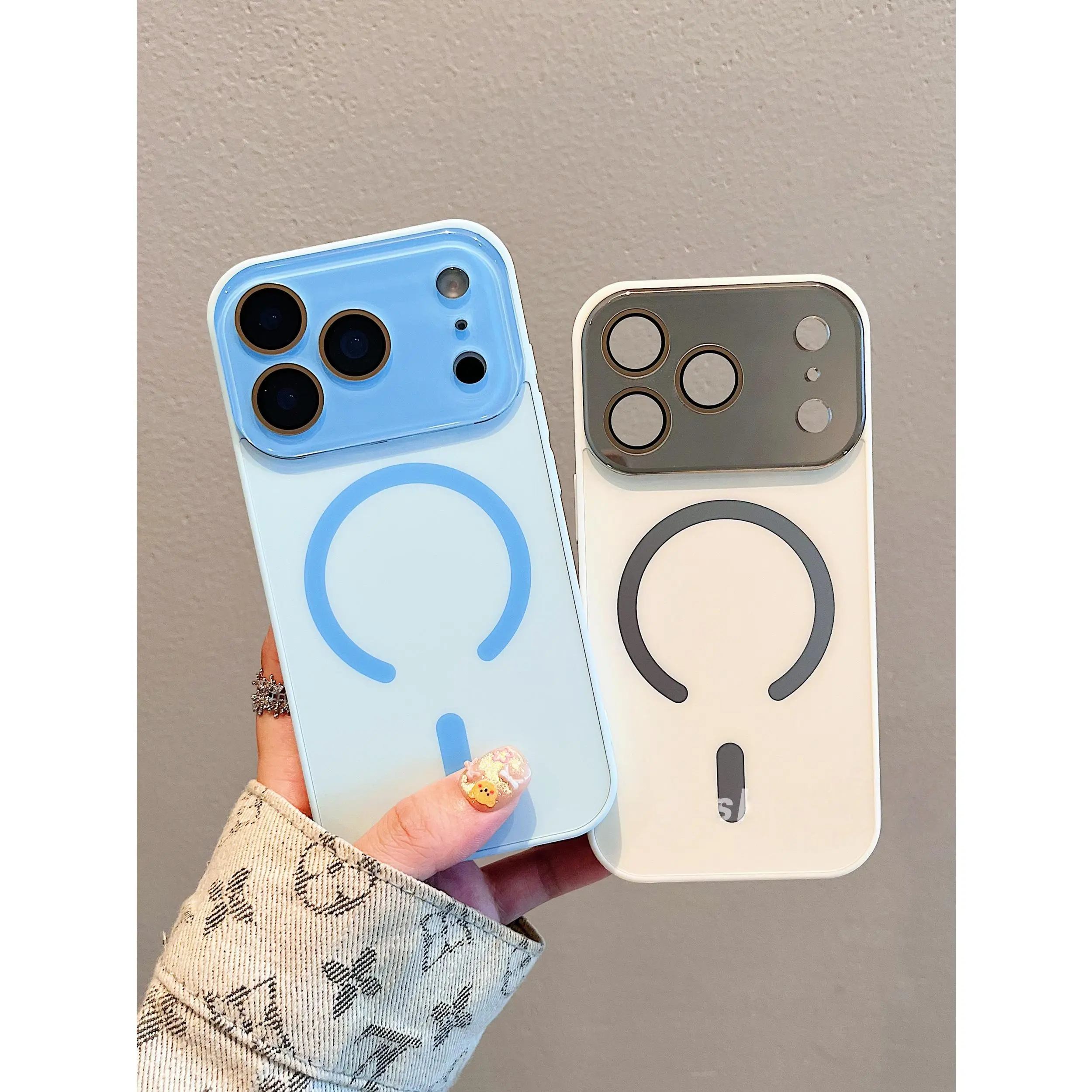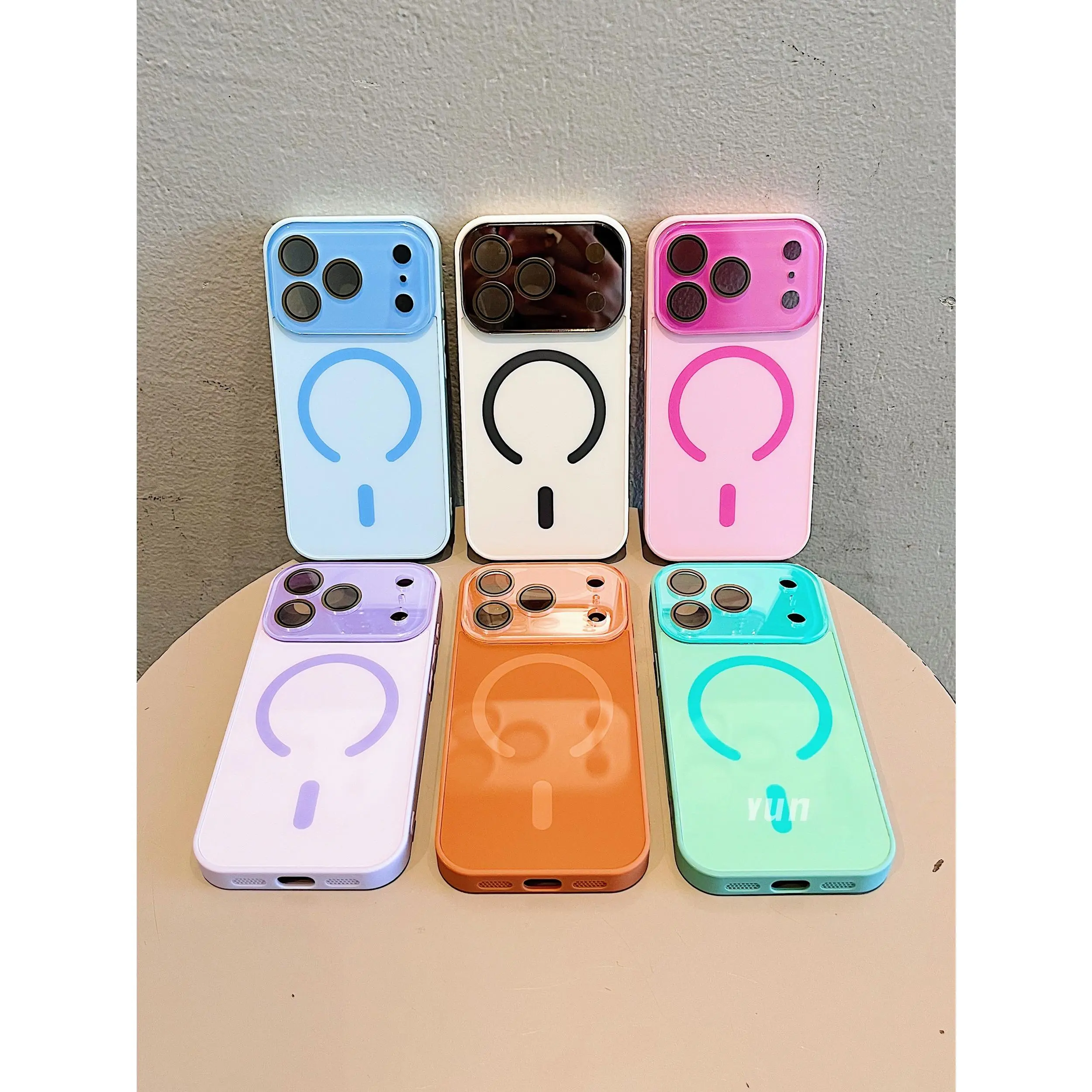 Solid colour large window magnetic phone case for iPhone 17 Pro MAX 13 14 15 16 Pro MAX shockproof back cover