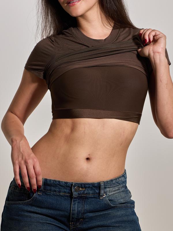 I bought this shirt in black and grey. Didn’t expect the shirt to be a crop top, would’ve like it to be longer. The material feels nice and cool
