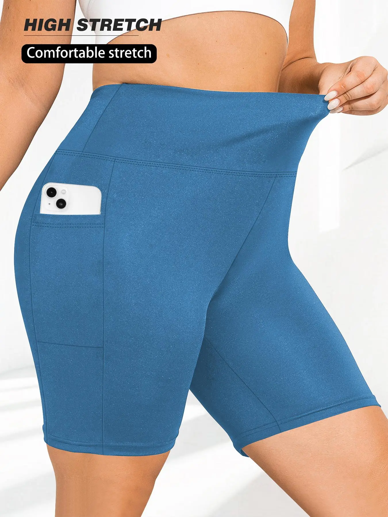 5. 【Plus Size】 Solid High Waist Biker Shorts, Stretch Shorts, Casual Comfy Breathable Skinny Shorts for Daily Wear, Women's Bottoms for Summer
