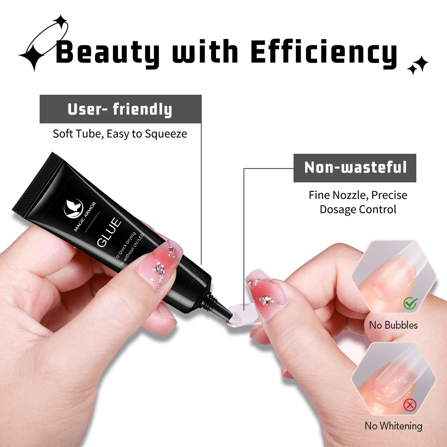 *NOTE This is not sticky or thick gel glue it is just like regular nail glue so you have to hold the nail in place until it sets. Kind of messy if you add too much because you cannot manipulate it like gel. Hold is great lasted for 6 days until I used remover to change nails.