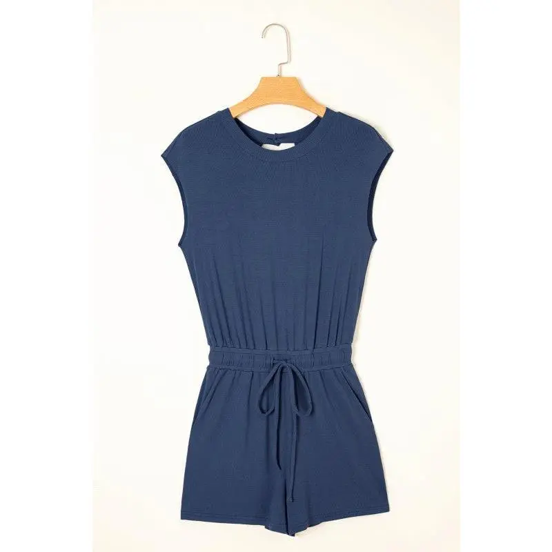 Effortlessly chic and oh-so-comfy, this romper is your new go-to for laid-back style. Featuring a crew neckline, cap sleeves, and a drawstring waist, it strikes the perfect balance between casual and put-together. The flexible elastic waistband moves with you for all-day comfort, while the open back adds an unexpected touch of flair. Throw on ankle boots and you've got an outfit that's ready for anything, brunch, errands, or weekend adventures. Viscose/Spandex.