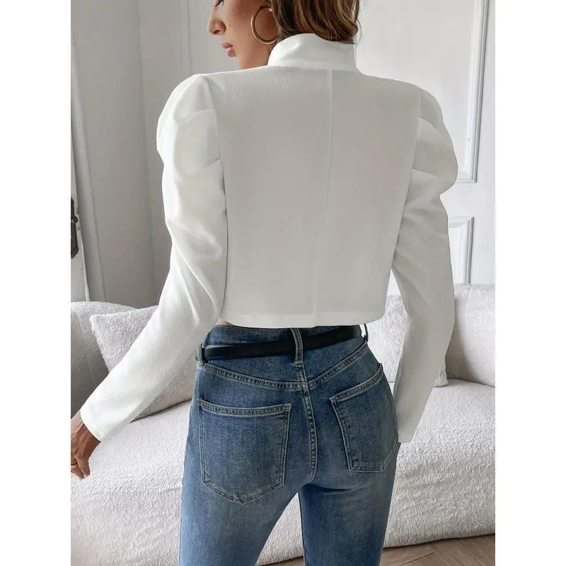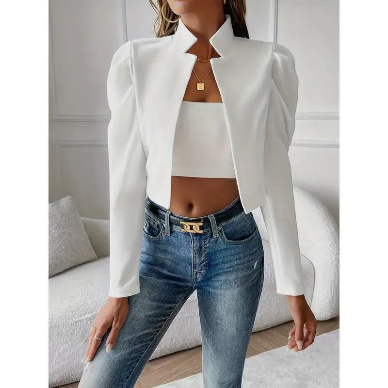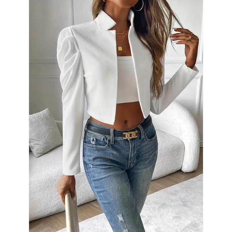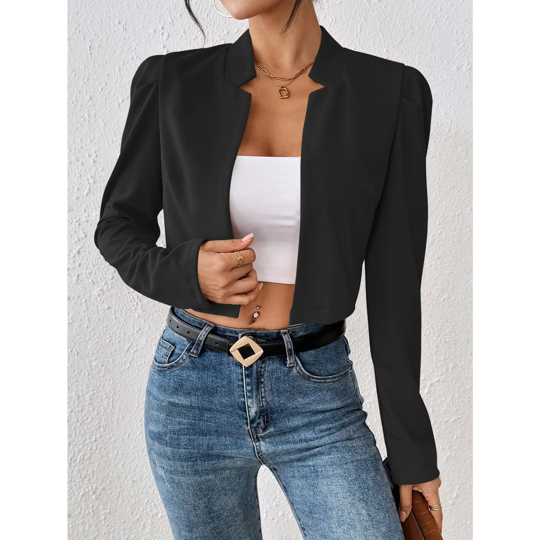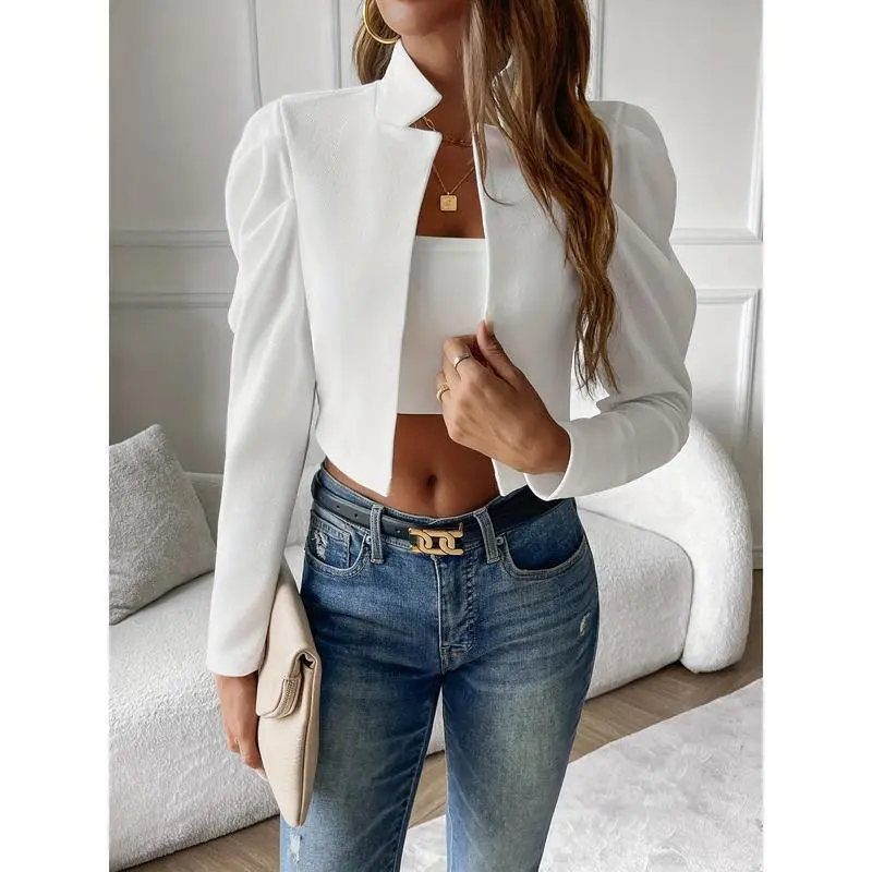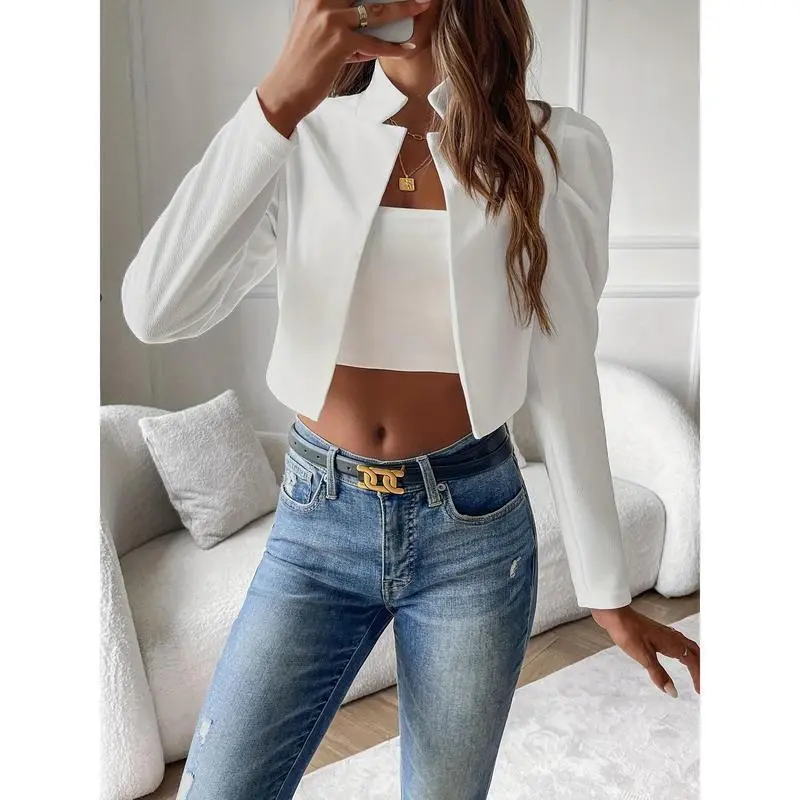 5. Solid Open-Front Cropped Jacket, Elegant Lapel Jacket for Spring and Autumn, Women’s Clothing